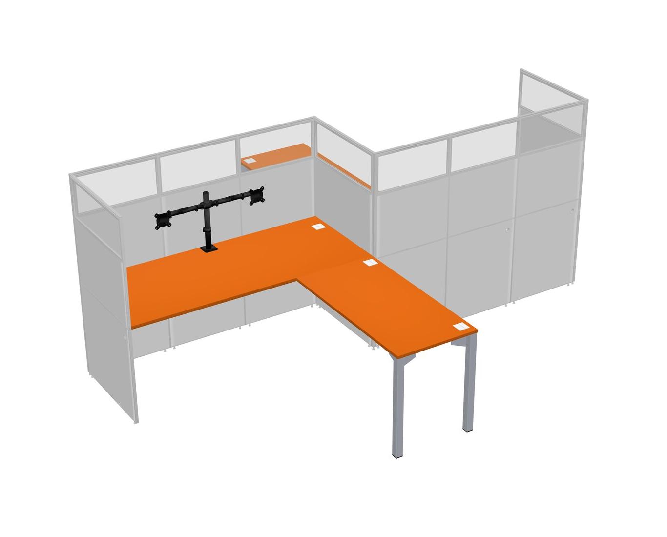 Orange L-shape Cubicle Workstations For 2 - Zigzag Formation + Panel Return