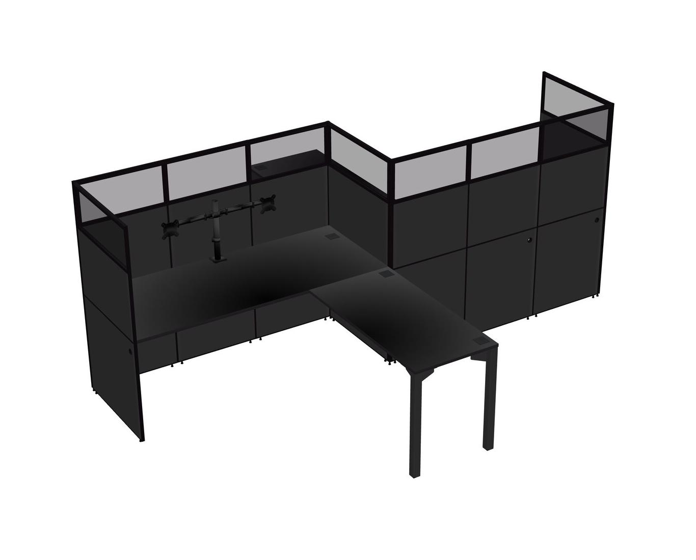 Black L-shape Cubicle Workstations For 2 - Zigzag Formation + Panel Return