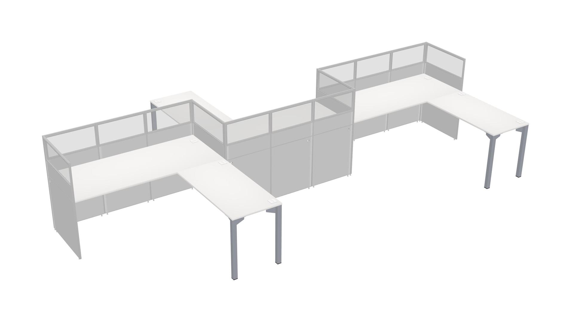 White L-shape Cubicle Workstations For 3 - Zigzag Formation + Panel Return