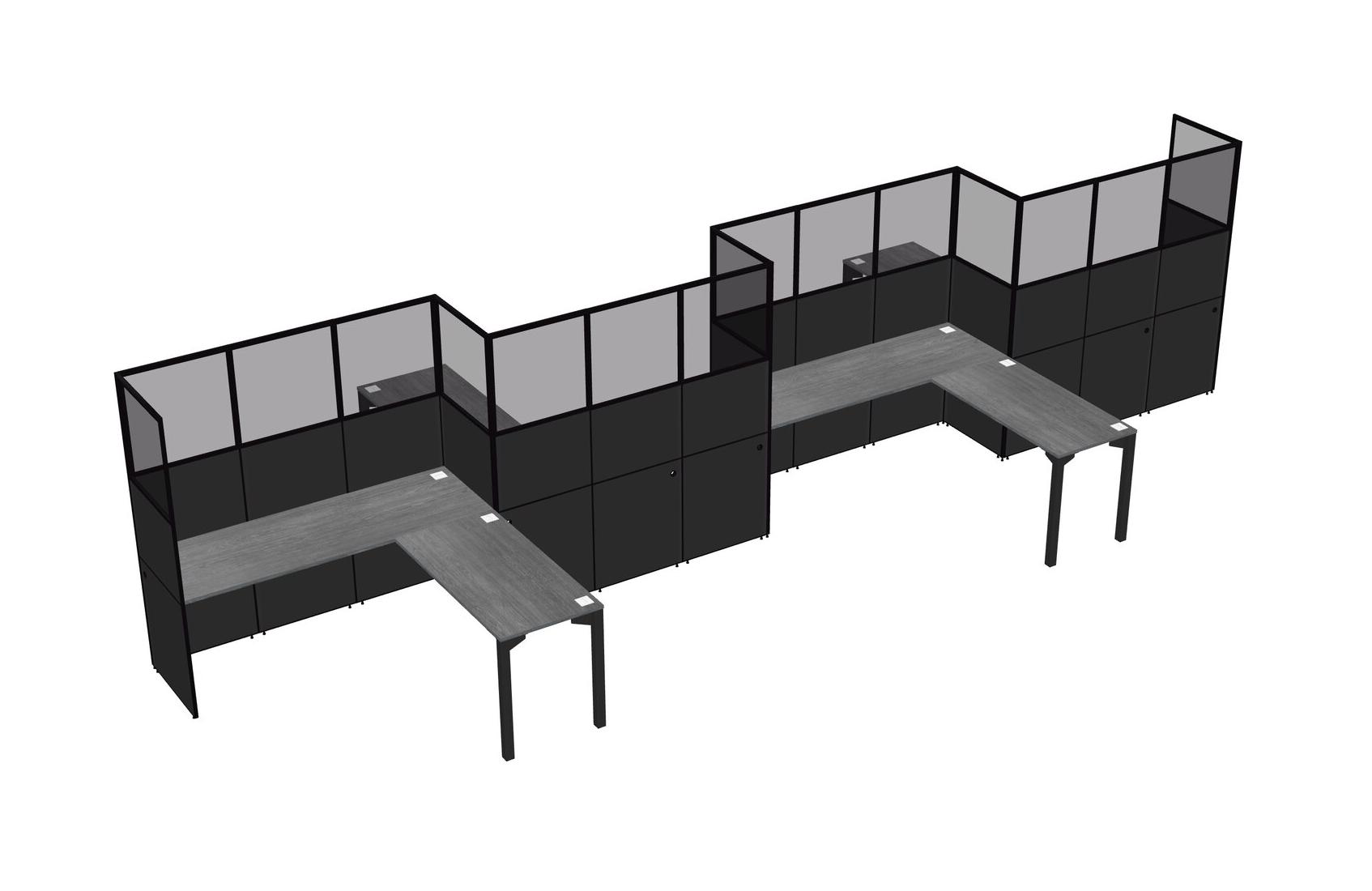 Grey L-shape Cubicle Workstations For 4 - Zigzag Formation + Panel Return