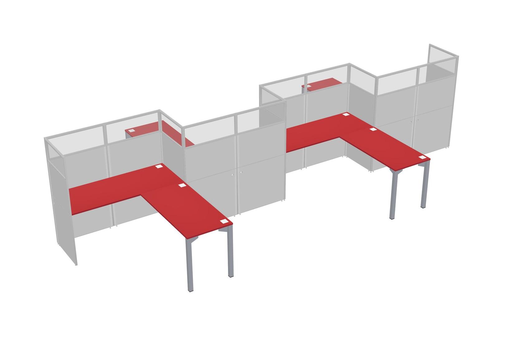 Prism Red L-shape Cubicle Workstations For 4 - Zigzag Formation + Panel Return
