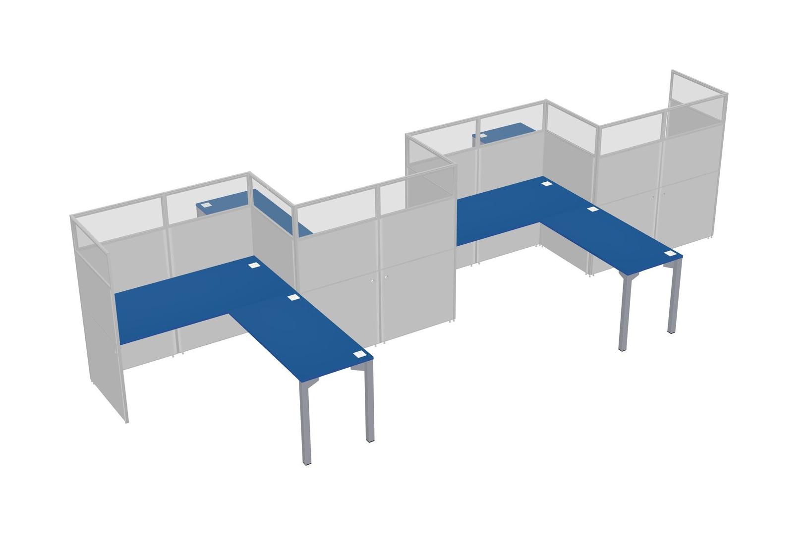 Prism Blue L-shape Cubicle Workstations For 4 - Zigzag Formation + Panel Return