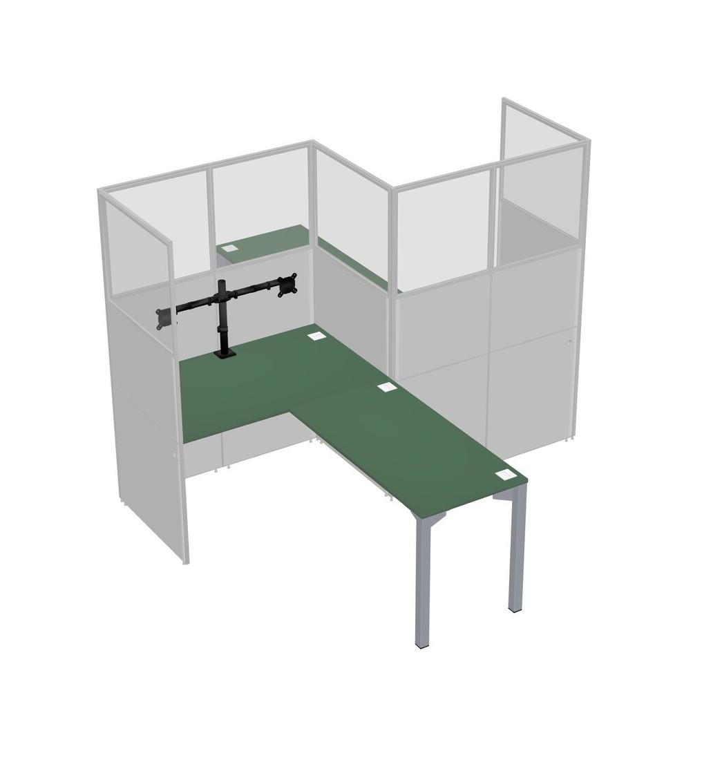 Green L-shape Cubicle Workstations For 2 - Zigzag Formation + Panel Return