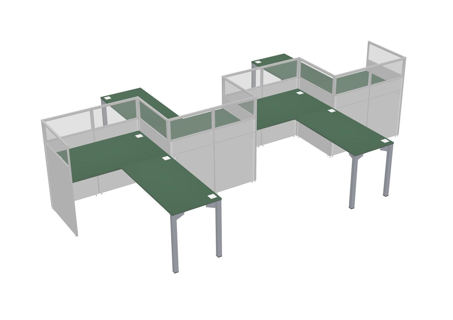 Green L-shape Cubicle Workstations For 4 - Zigzag Formation + Panel Return