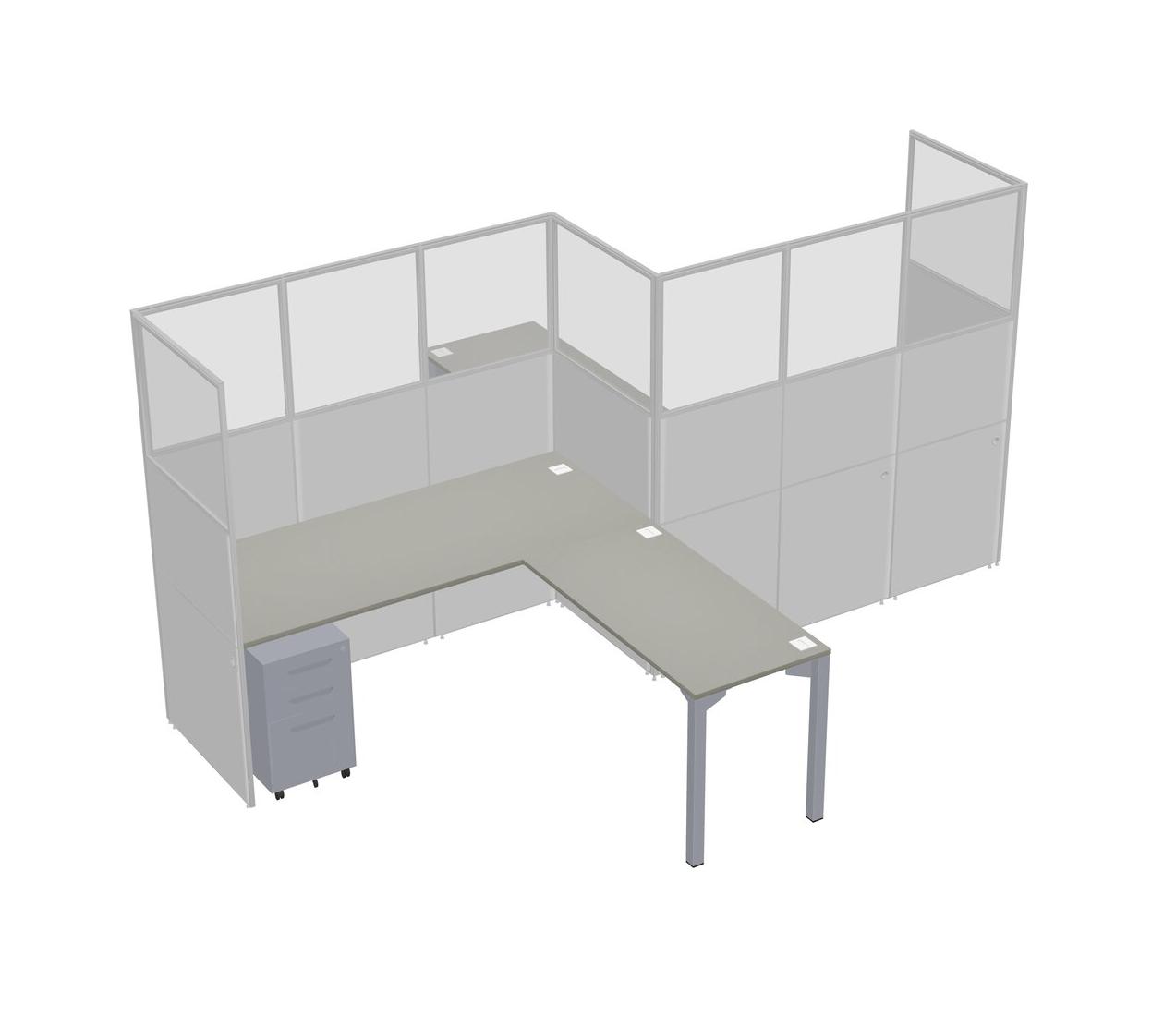 Grey Shadows L-shape Cubicle Workstations For 2 - Zigzag Formation + Grey Metal Mobile Drawers + Panel Return