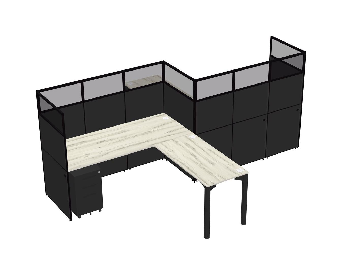 Heinne Holz L-shape Cubicle Workstations For 2 - Zigzag Formation + Black Metal Mobile Drawers + Panel Return