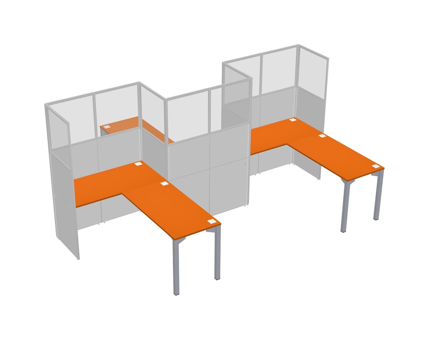 Orange L-shape Cubicle Workstations For 3 - Zigzag Formation + Panel Return