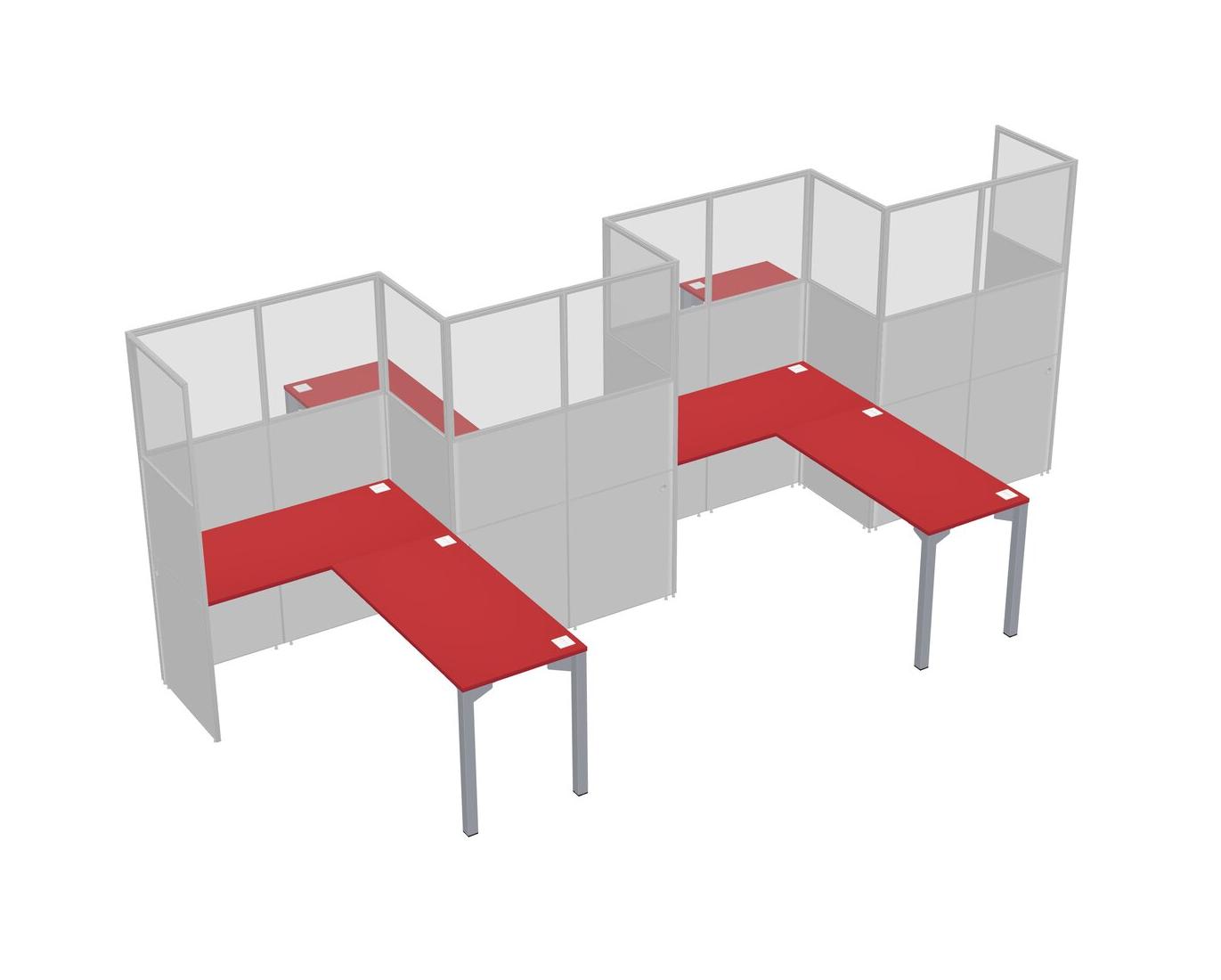 Prism Red L-shape Cubicle Workstations For 4 - Zigzag Formation + Panel Return