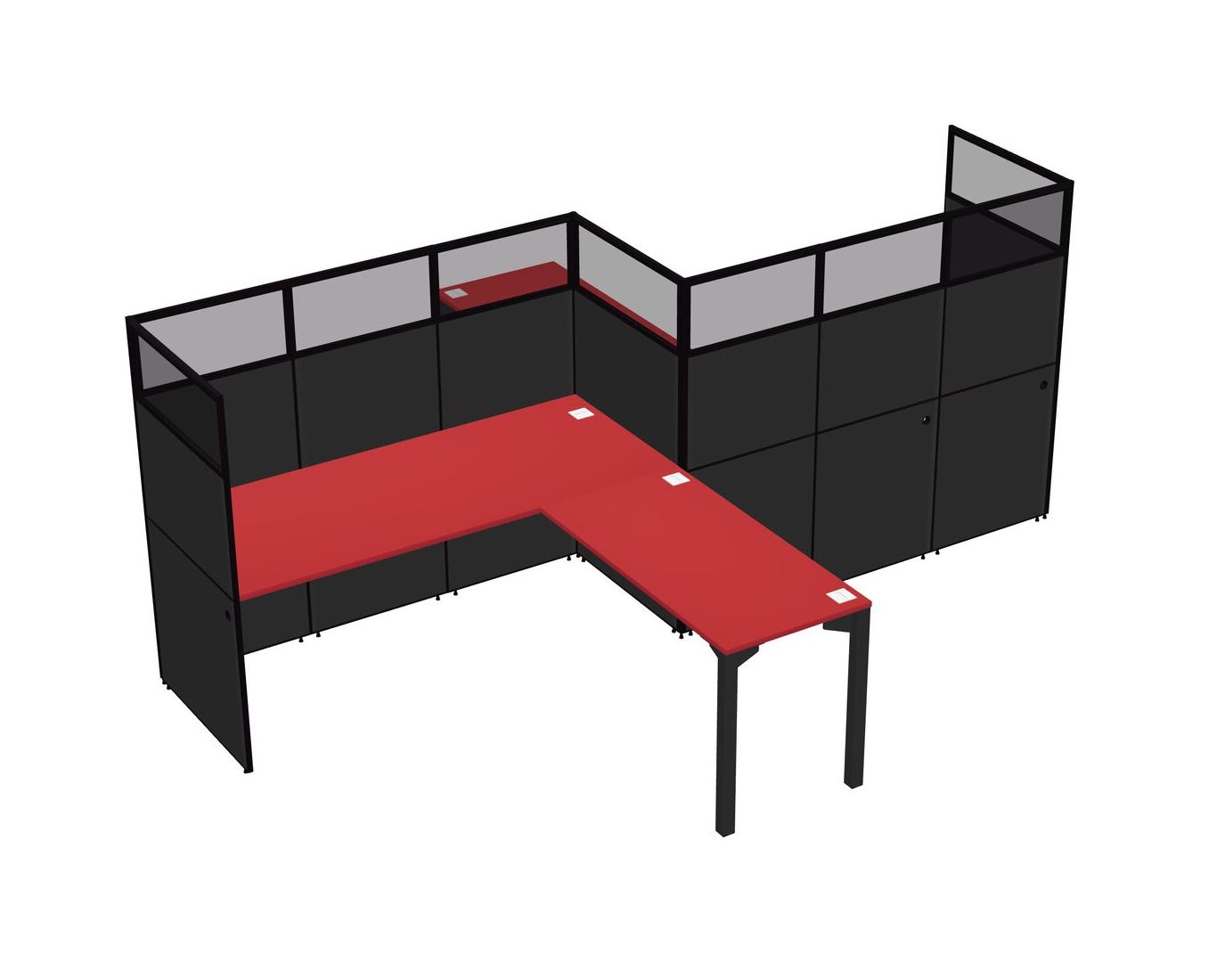 Prism Red L-shape Cubicle Workstations For 2 - Zigzag Formation + Panel Return