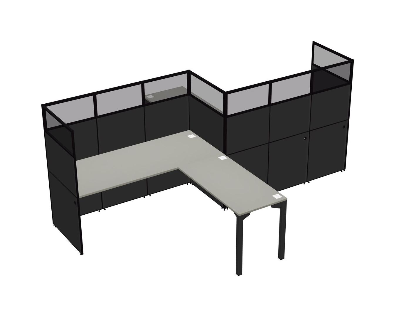 Grey Shadows L-shape Cubicle Workstations For 2 - Zigzag Formation + Panel Return