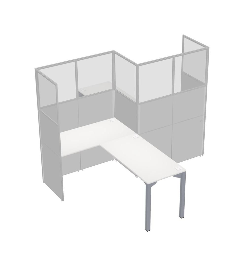 White L-shape Cubicle Workstations For 2 - Zigzag Formation + Panel Return