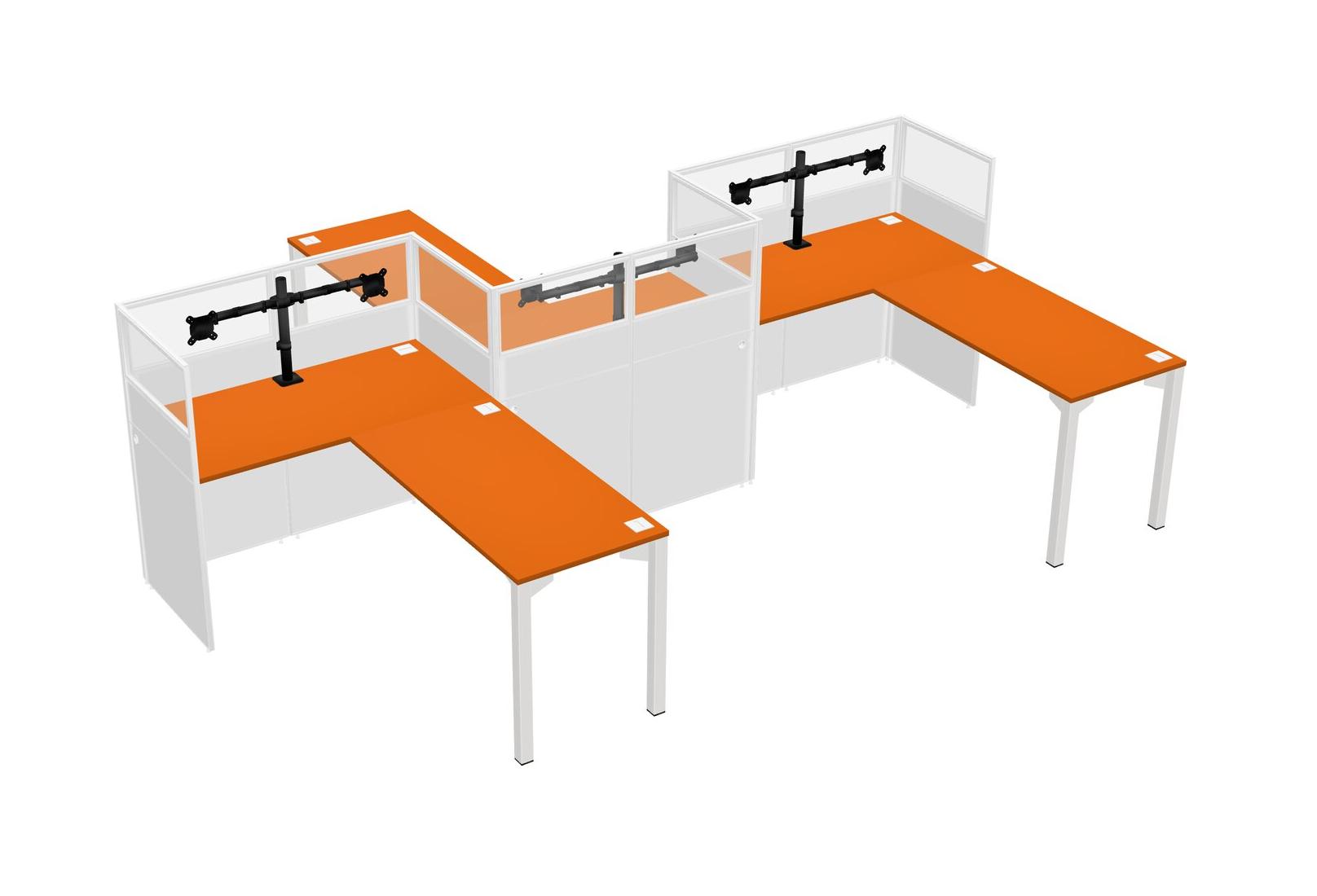 Orange L-shape Cubicle Workstations For 3 - Zigzag Formation + Panel Return