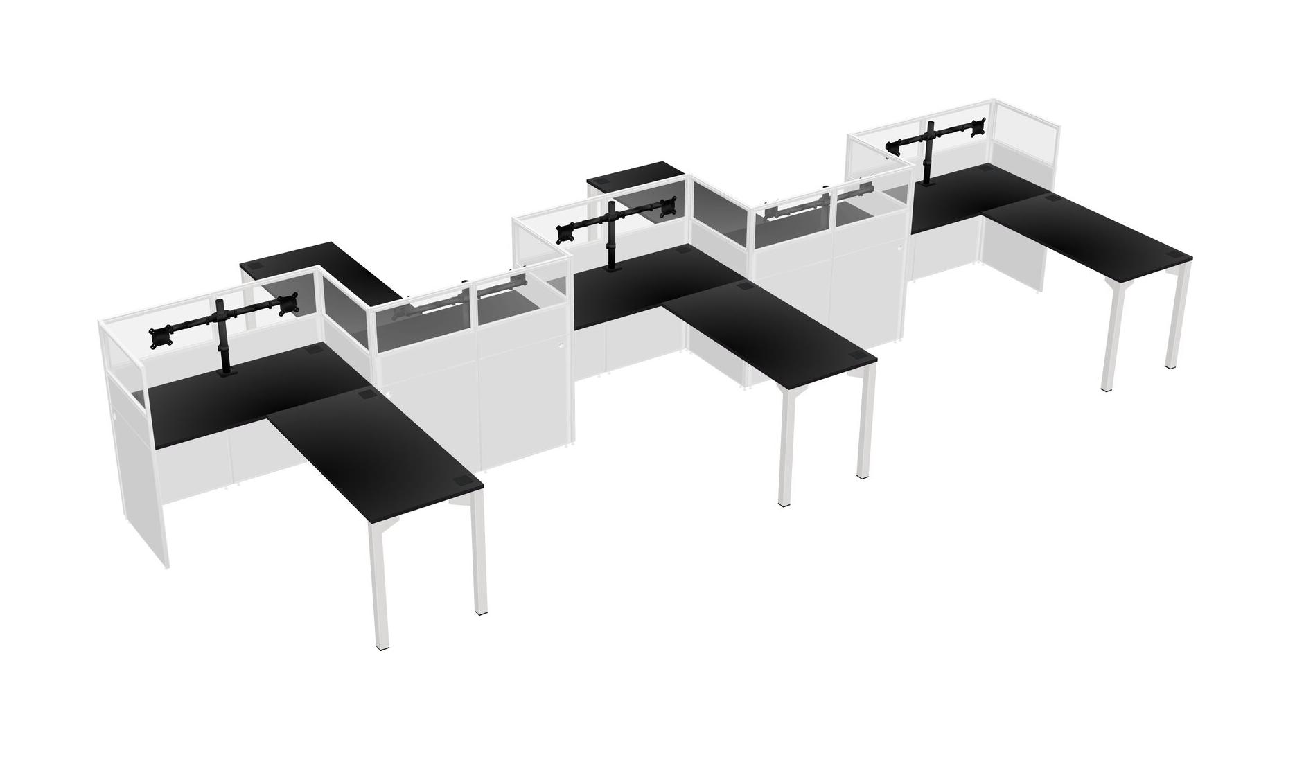Black L-shape Cubicle Workstations For 5 - Zigzag Formation + Panel Return