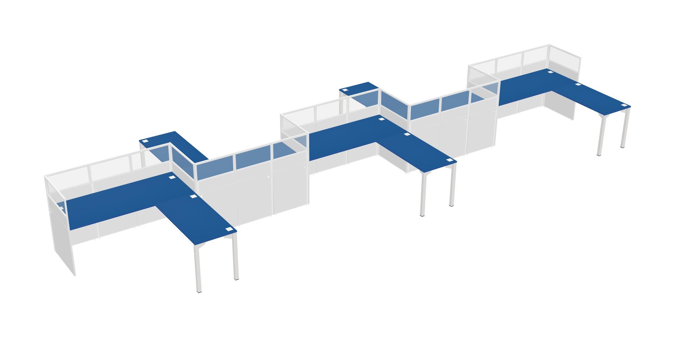 Prism Blue L-shape Cubicle Workstations For 5 - Zigzag Formation + Panel Return
