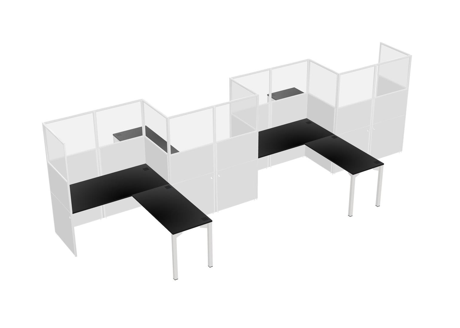 Black L-shape Cubicle Workstations For 4 - Zigzag Formation + Panel Return
