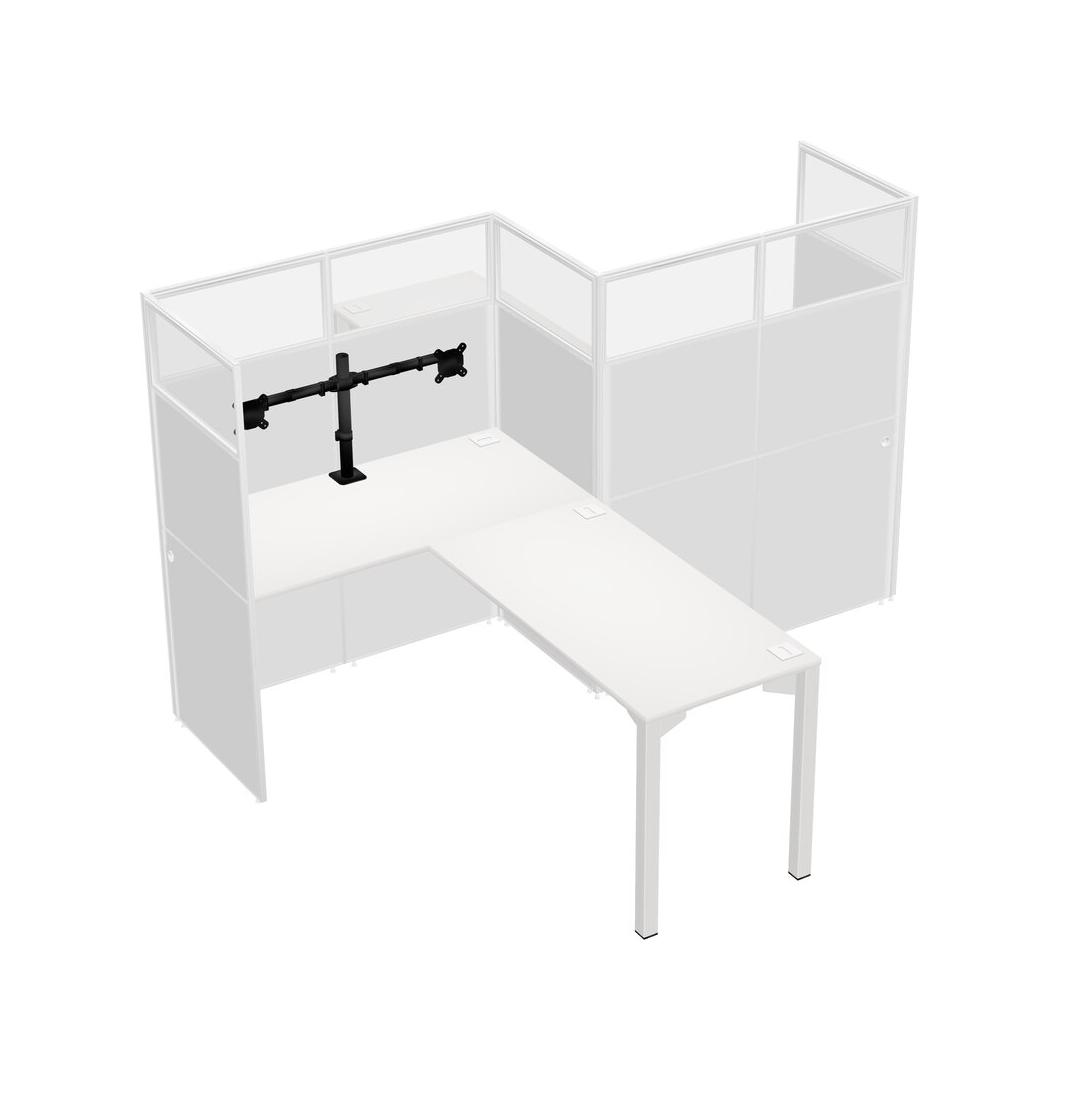 White L-shape Cubicle Workstations For 2 - Zigzag Formation + Panel Return