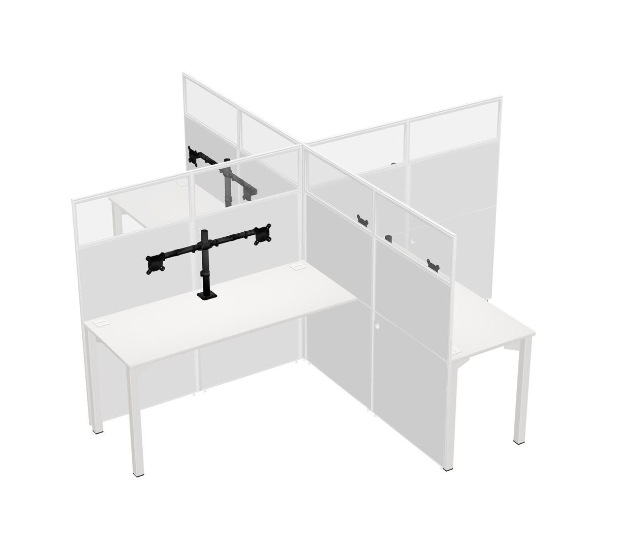 White Quad Cubicle Workstations For 4 + Monitor Arm (double Arms)