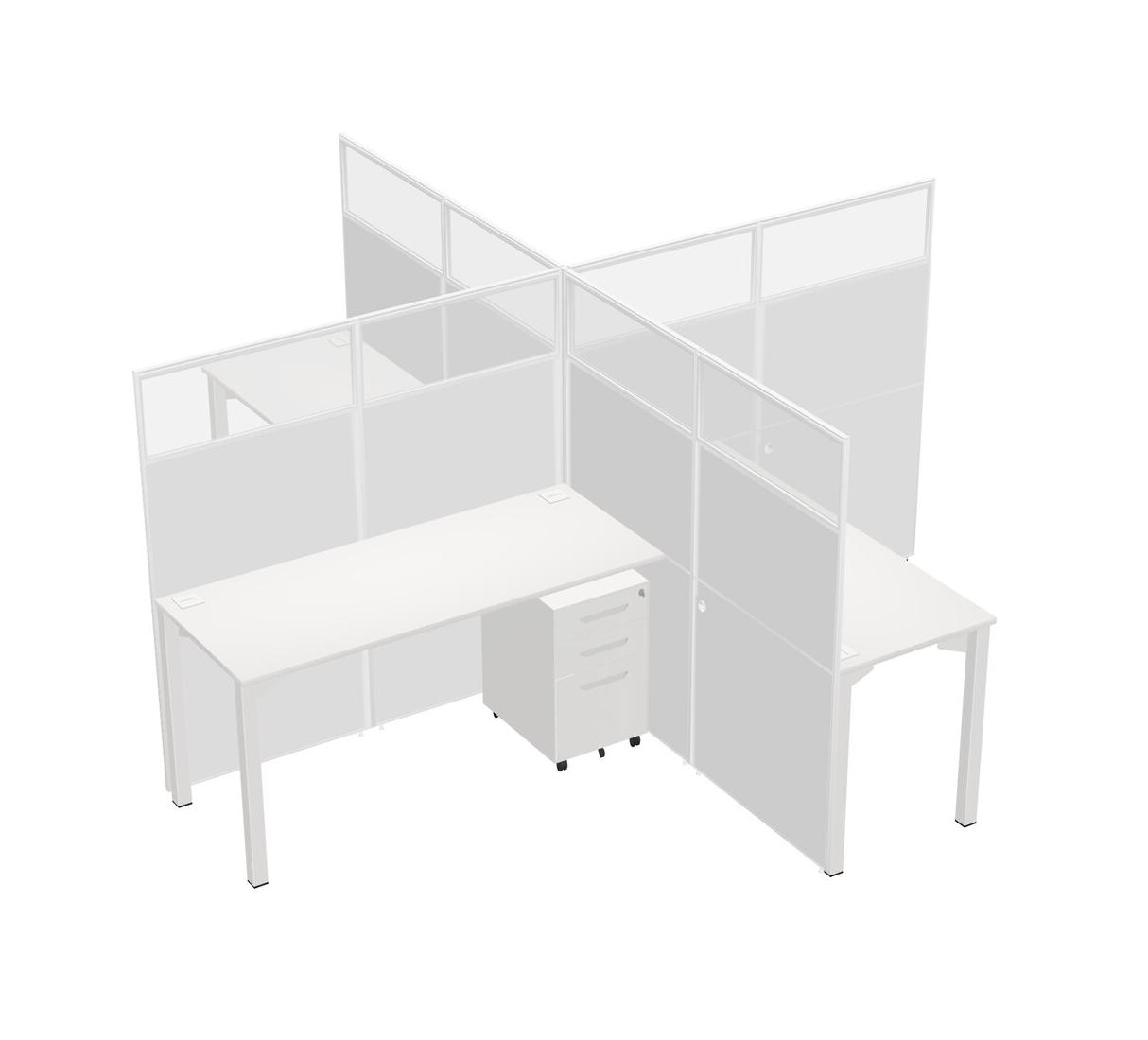 White Quad Cubicle Workstations For 4 + White Metal Mobile Drawers