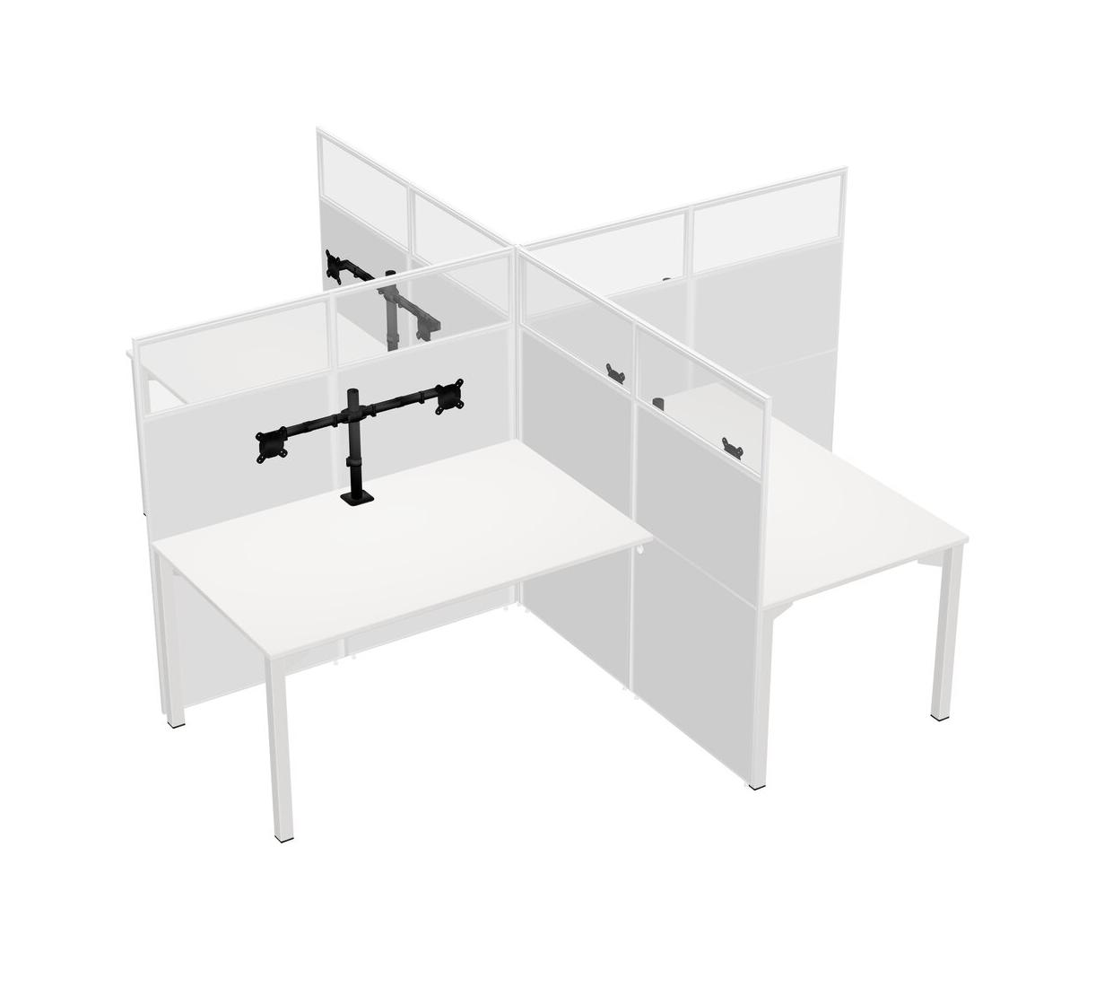 White Quad Cubicle Workstations For 4 + Monitor Arm (double Arms)