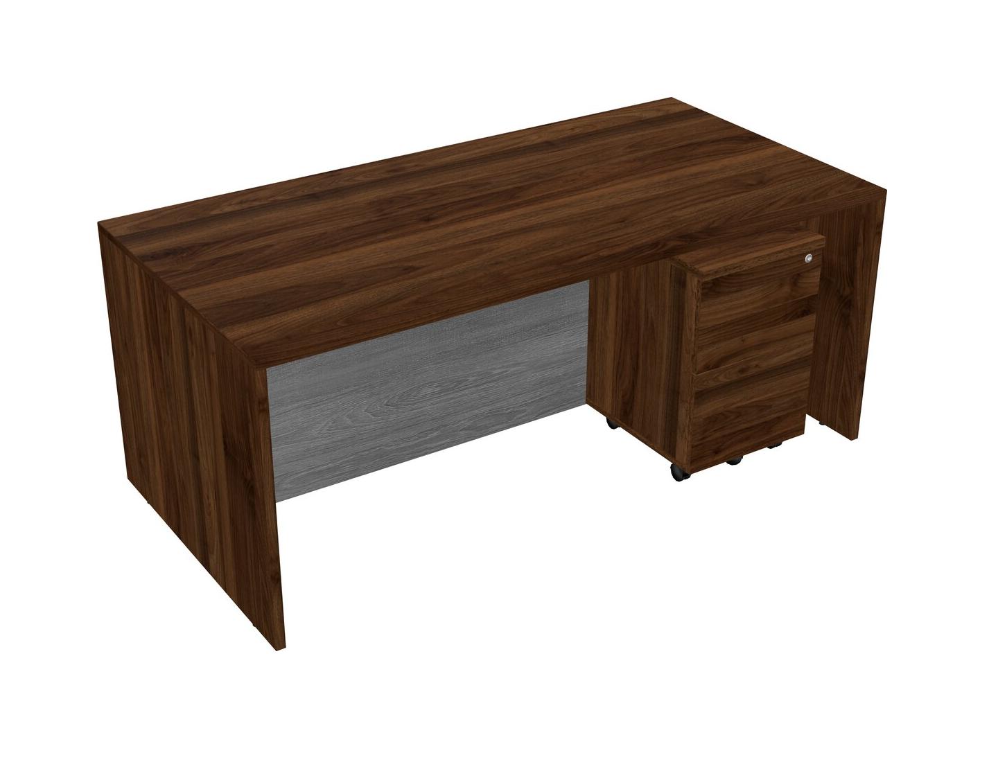 Bureau Rectangulaire En Noyer Columbia Avec Tiroirs Mobiles En Bois