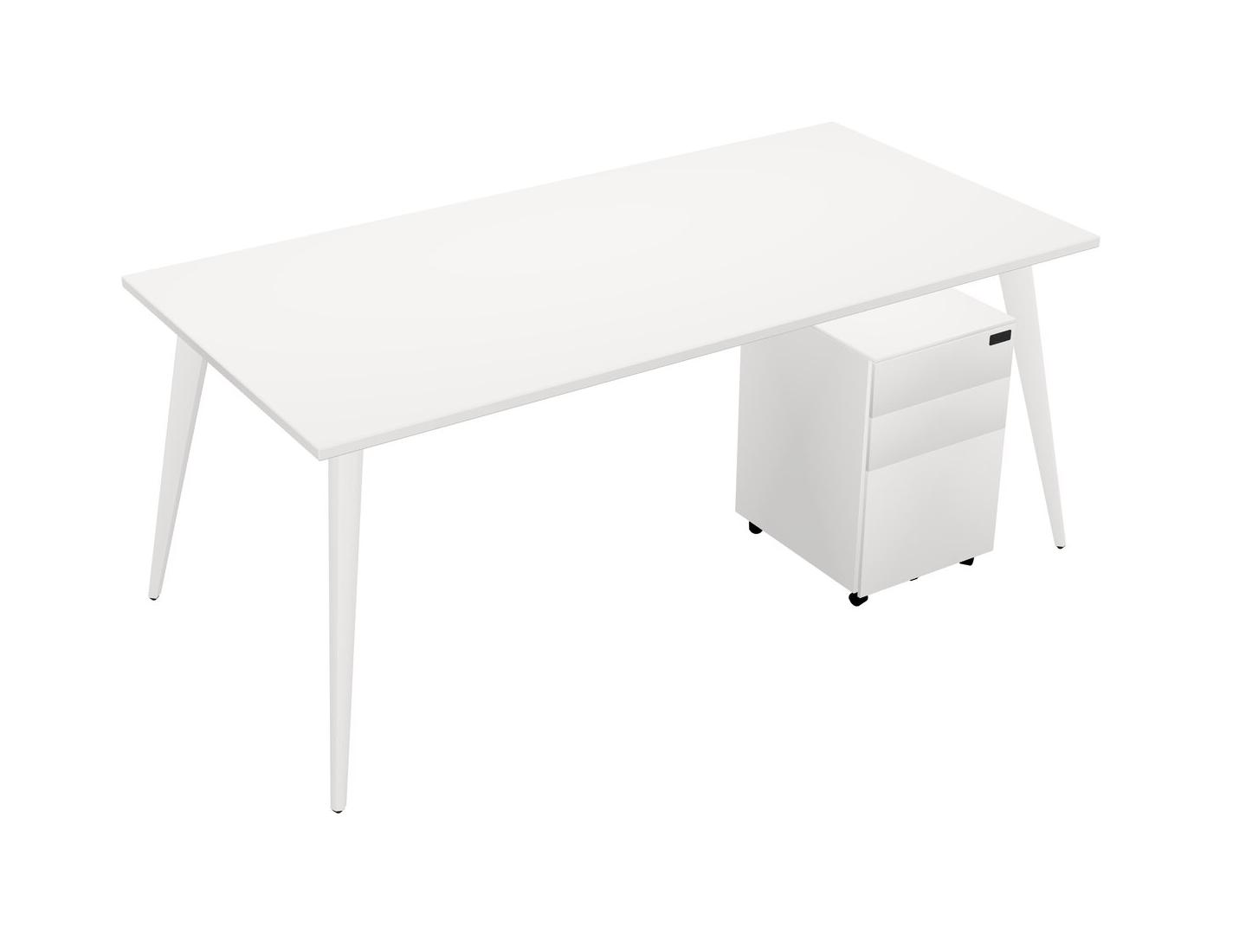 Bureau Rectangulaire Blanc Avec Tiroirs Mobiles En Métal