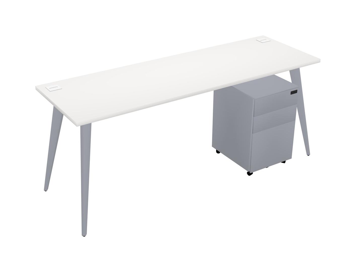 Bureau Rectangulaire Blanc Avec Tiroirs Mobiles En Métal