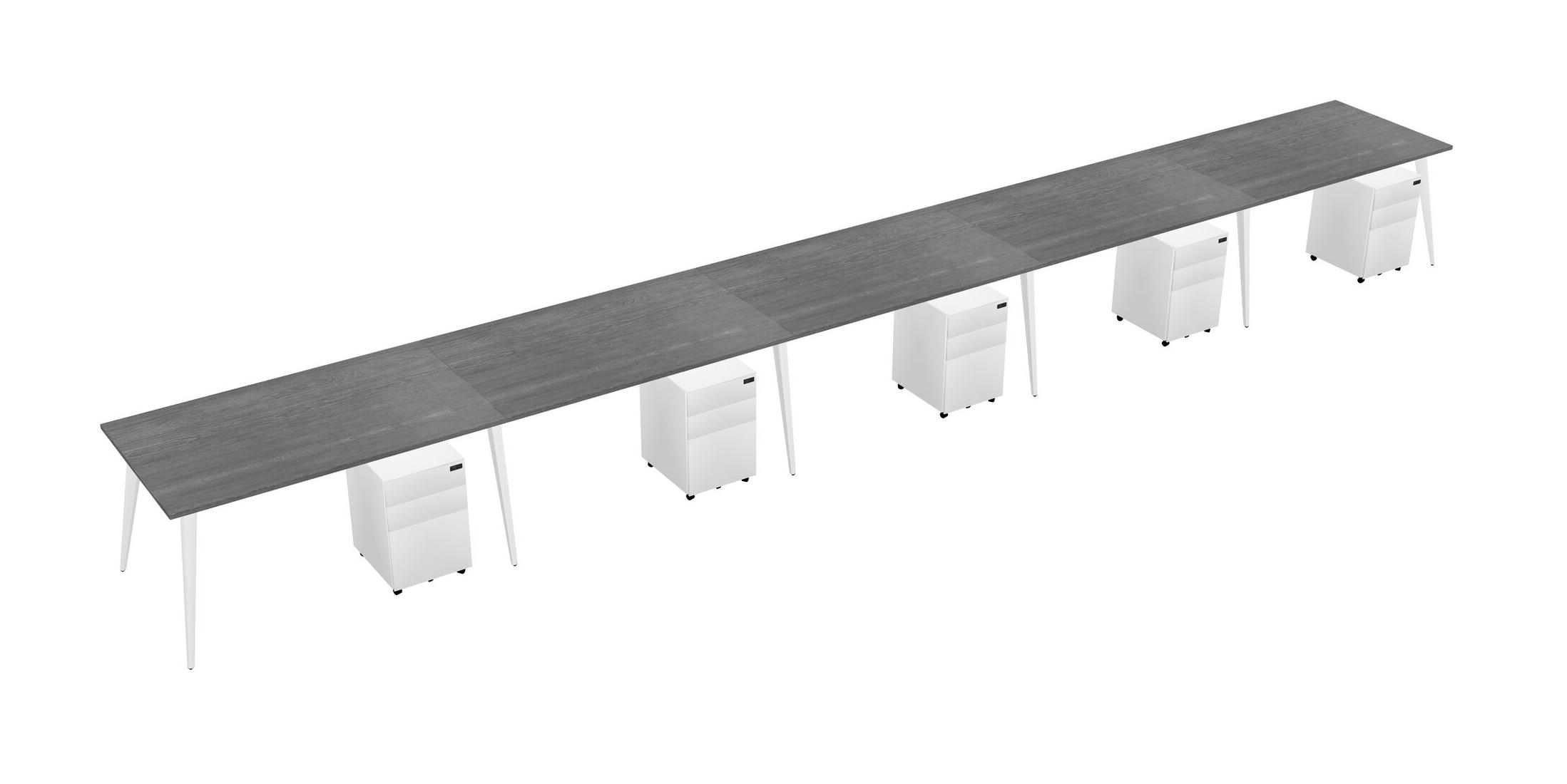Bureau Rectangulaire Gris Avec Tiroirs Mobiles En Métal