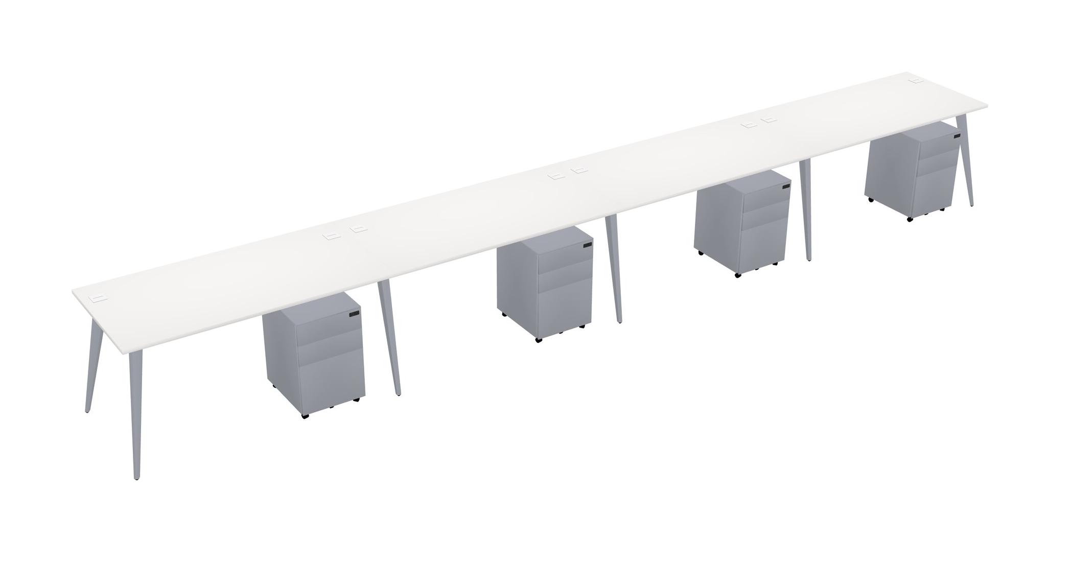 Bureau Rectangulaire Blanc Avec Tiroirs Mobiles En Métal