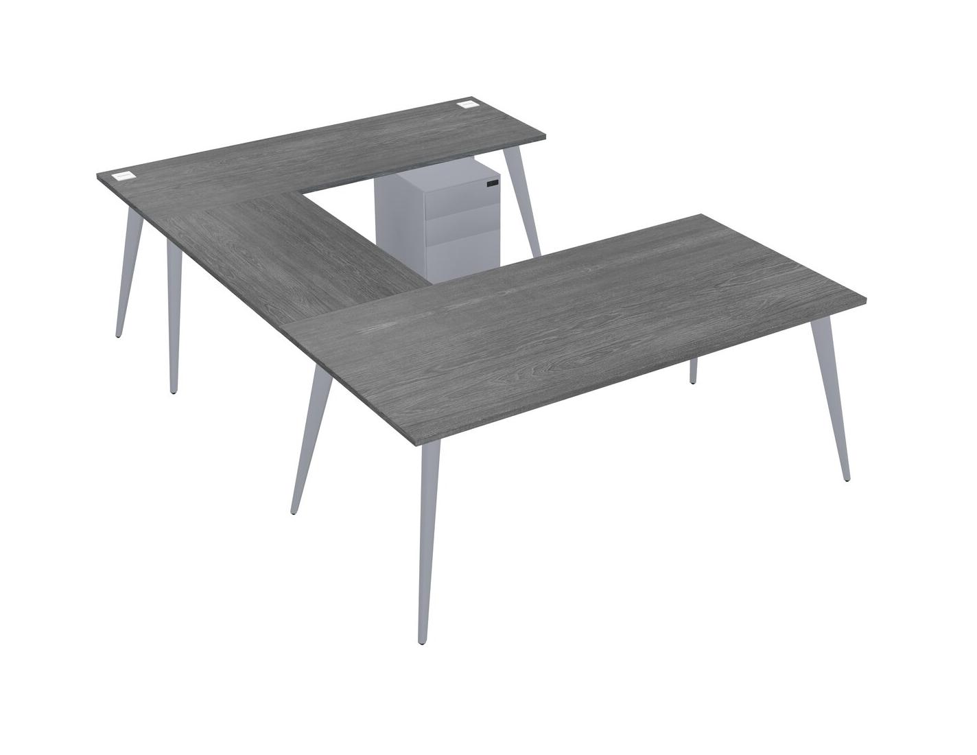 Bureau Gris En U Avec Tiroirs Mobiles En Métal