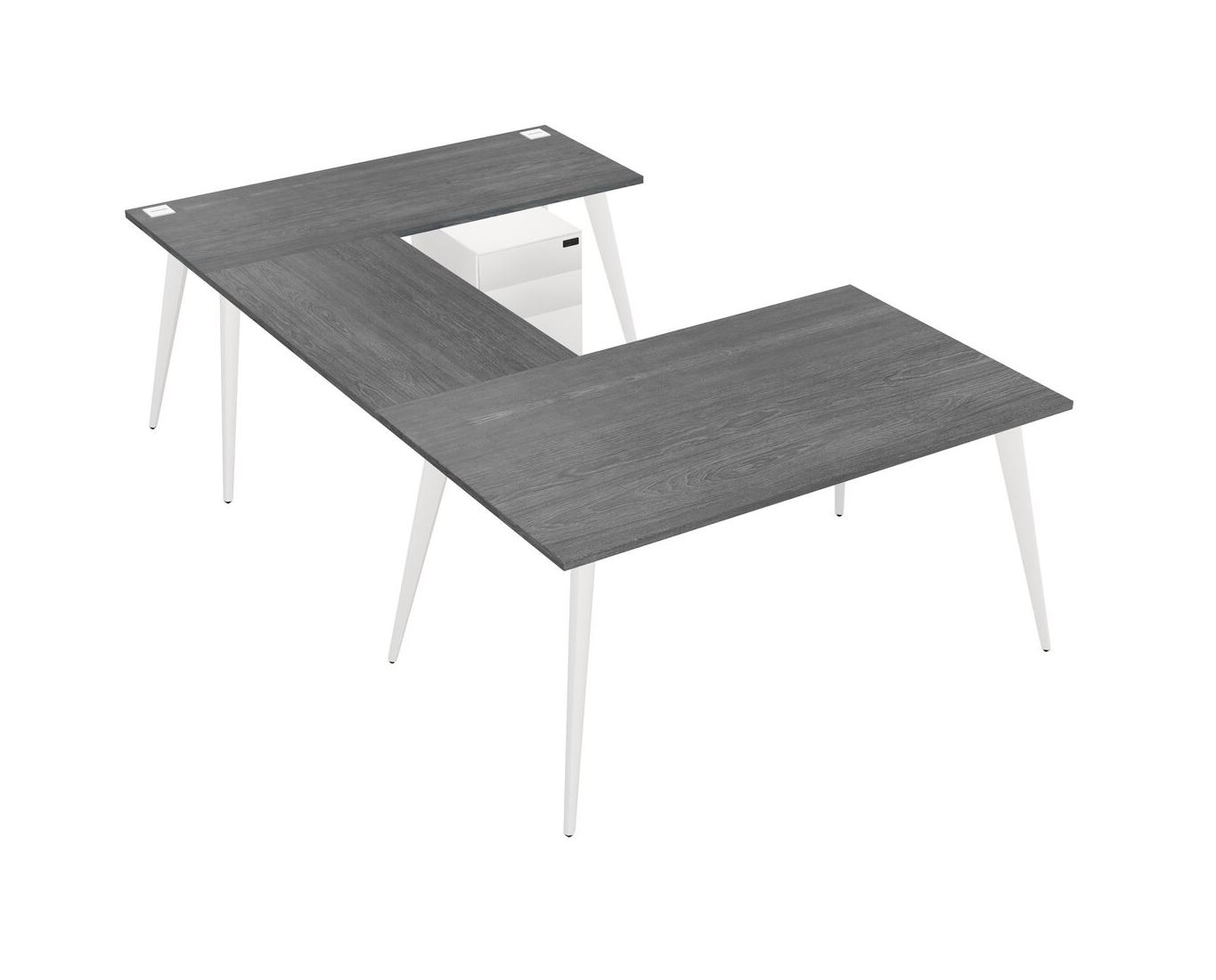 Bureau Gris En U Avec Tiroirs Mobiles En Métal