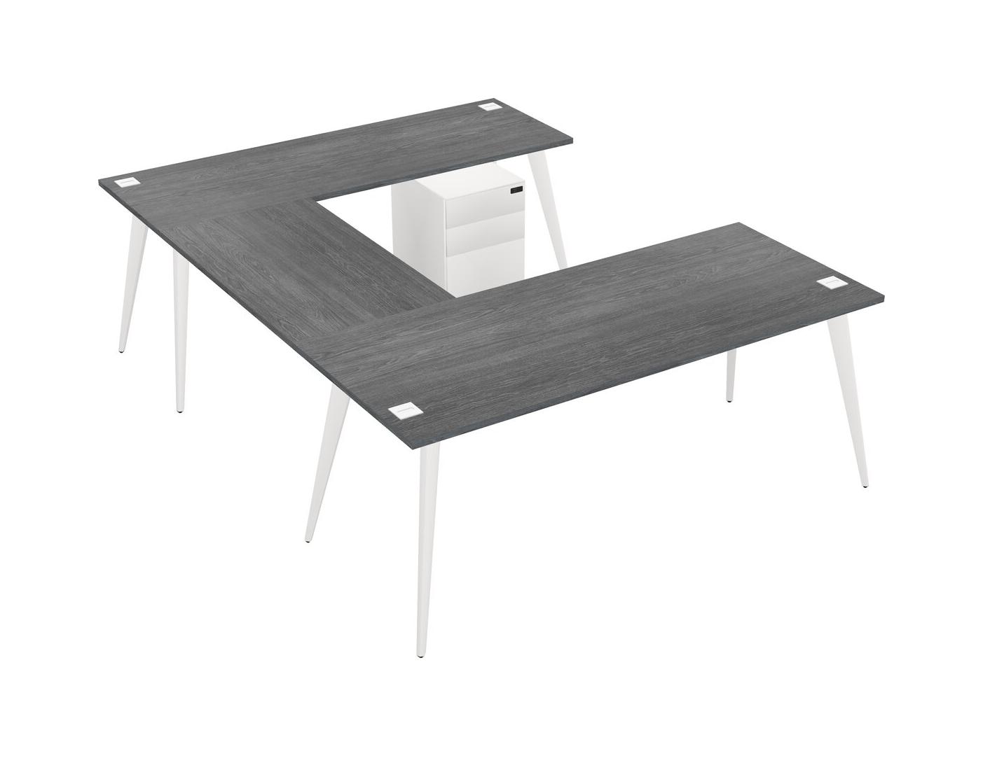 Bureau Gris En U Avec Tiroirs Mobiles En Métal