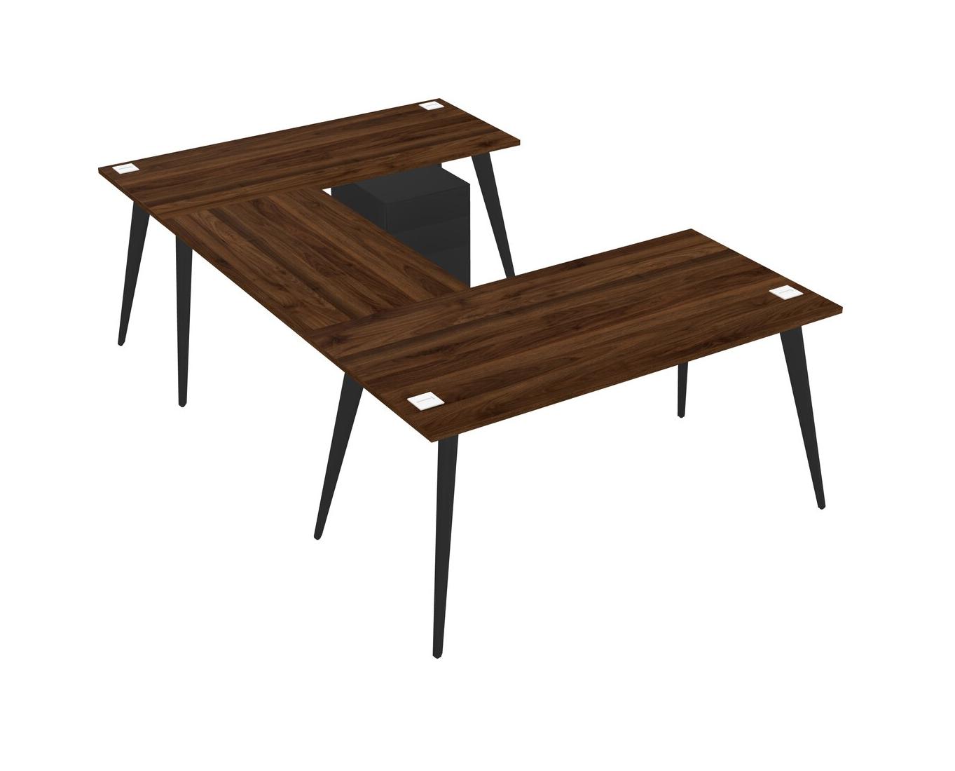 Bureau En U En Noyer Columbia Avec Tiroirs Mobiles En Métal