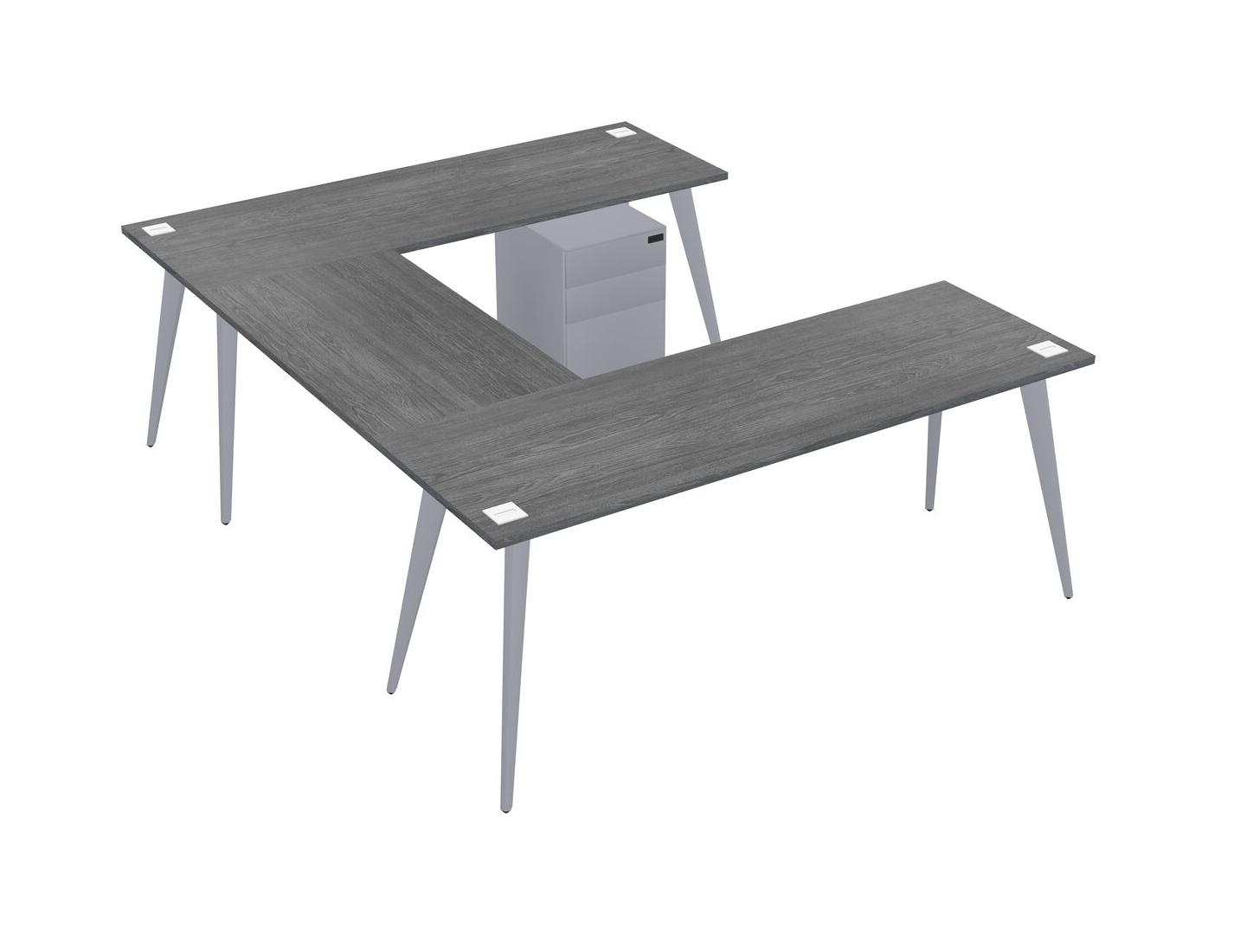 Bureau Gris En U Avec Tiroirs Mobiles En Métal