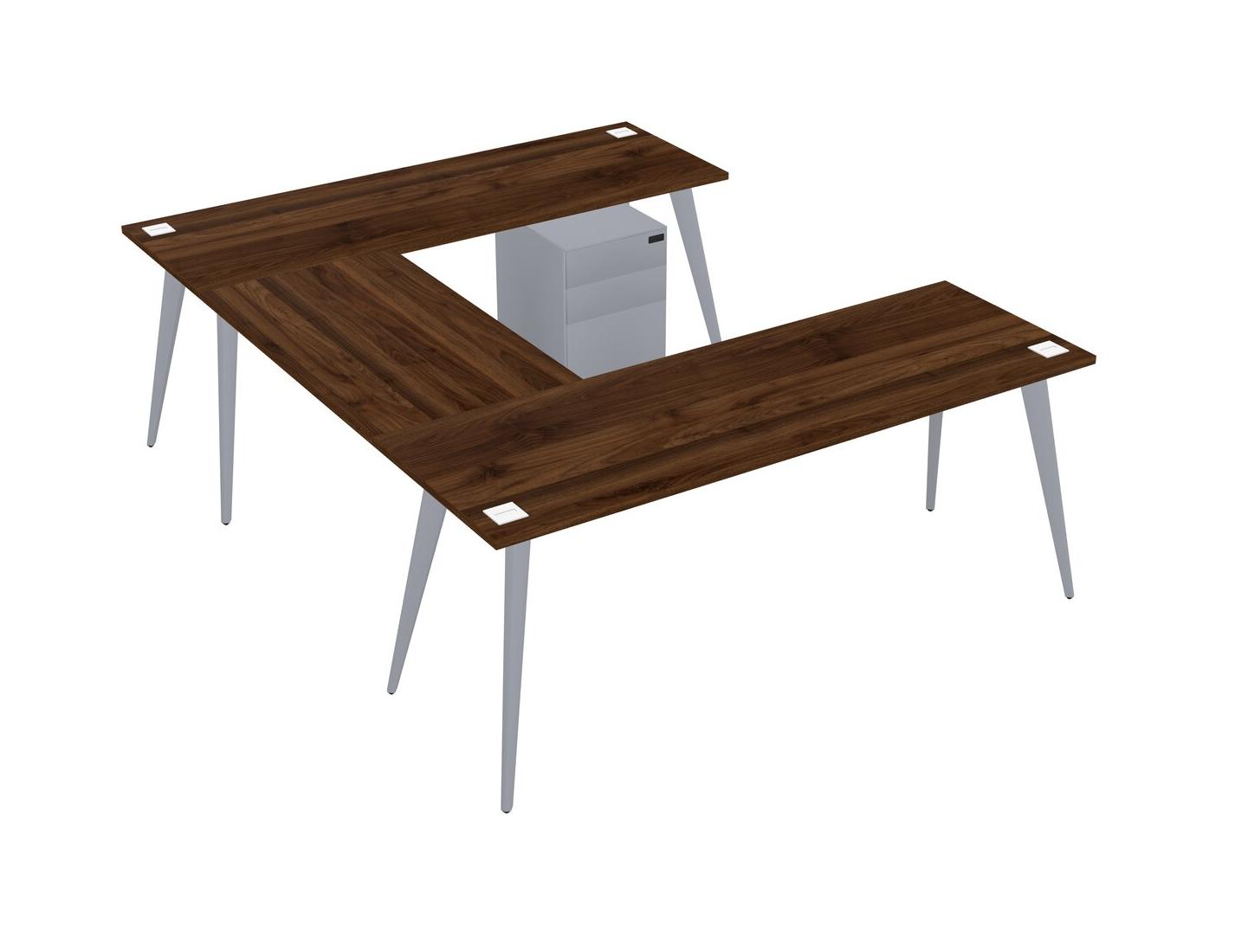 Bureau En U En Noyer Columbia Avec Tiroirs Mobiles En Métal