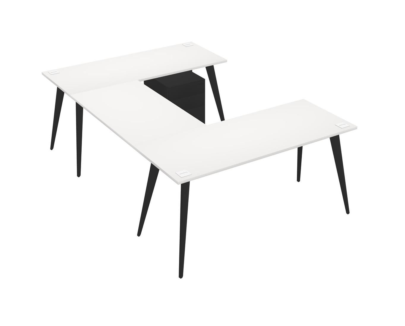 Bureau Blanc En U Avec Tiroirs Mobiles En Métal