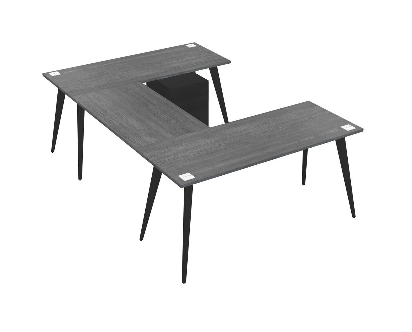 Bureau Gris En U Avec Tiroirs Mobiles En Métal