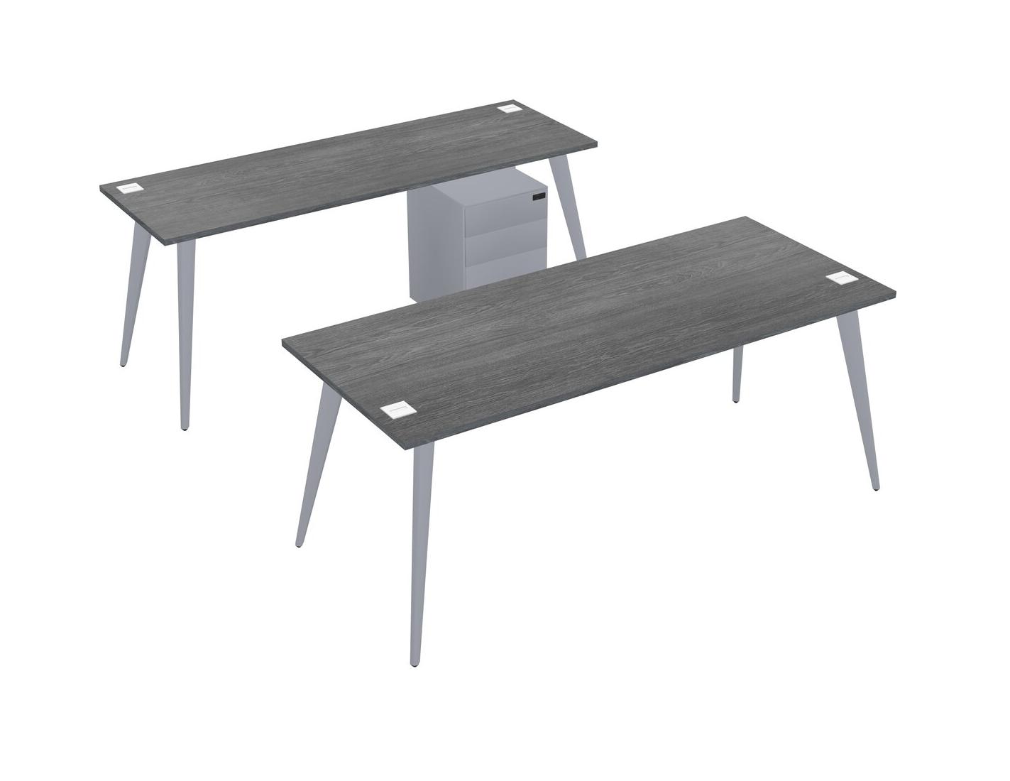 Bureau Parallèle Gris Avec Tiroirs Mobiles En Métal