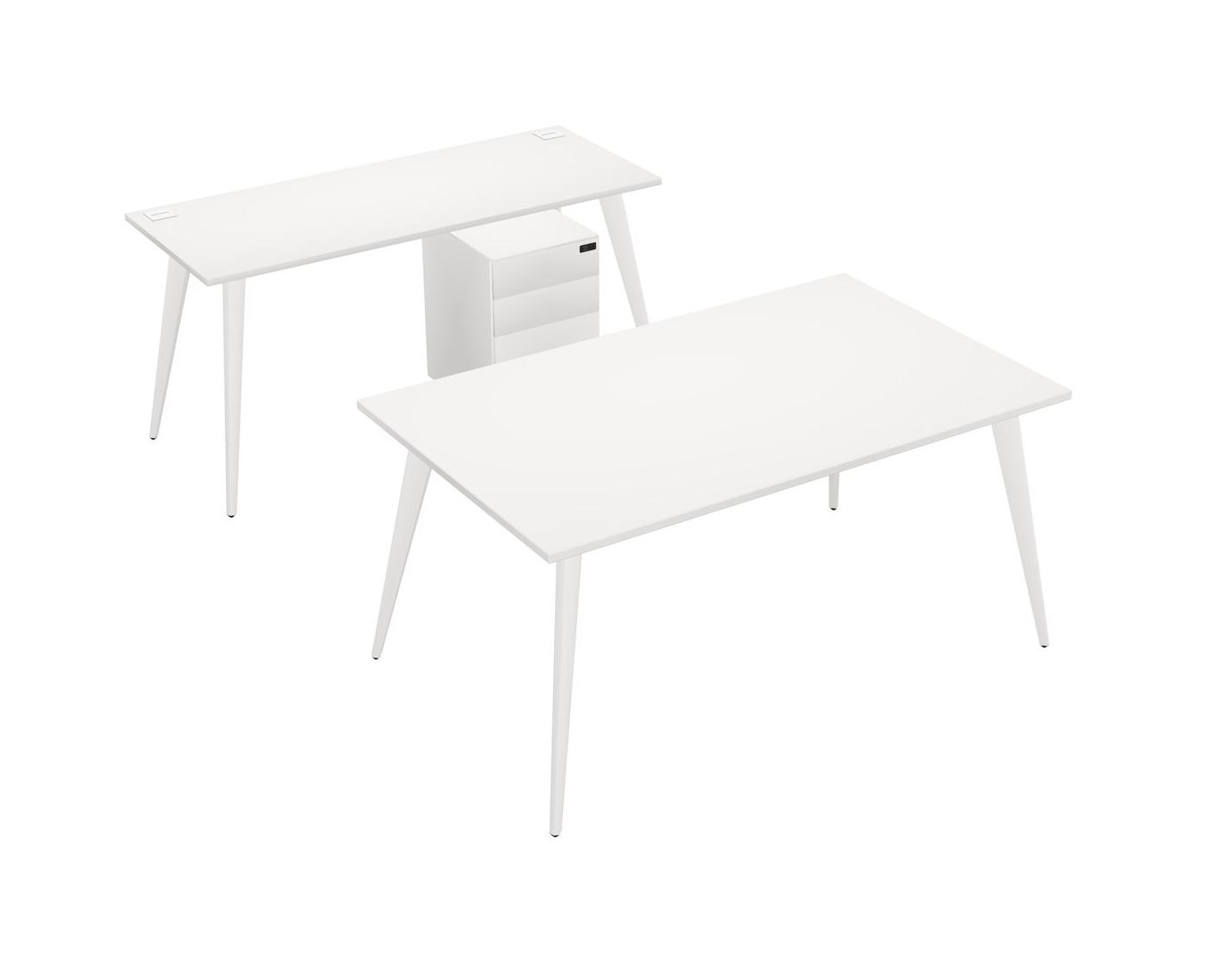 Bureau Parallèle Blanc Avec Tiroirs Mobiles En Métal