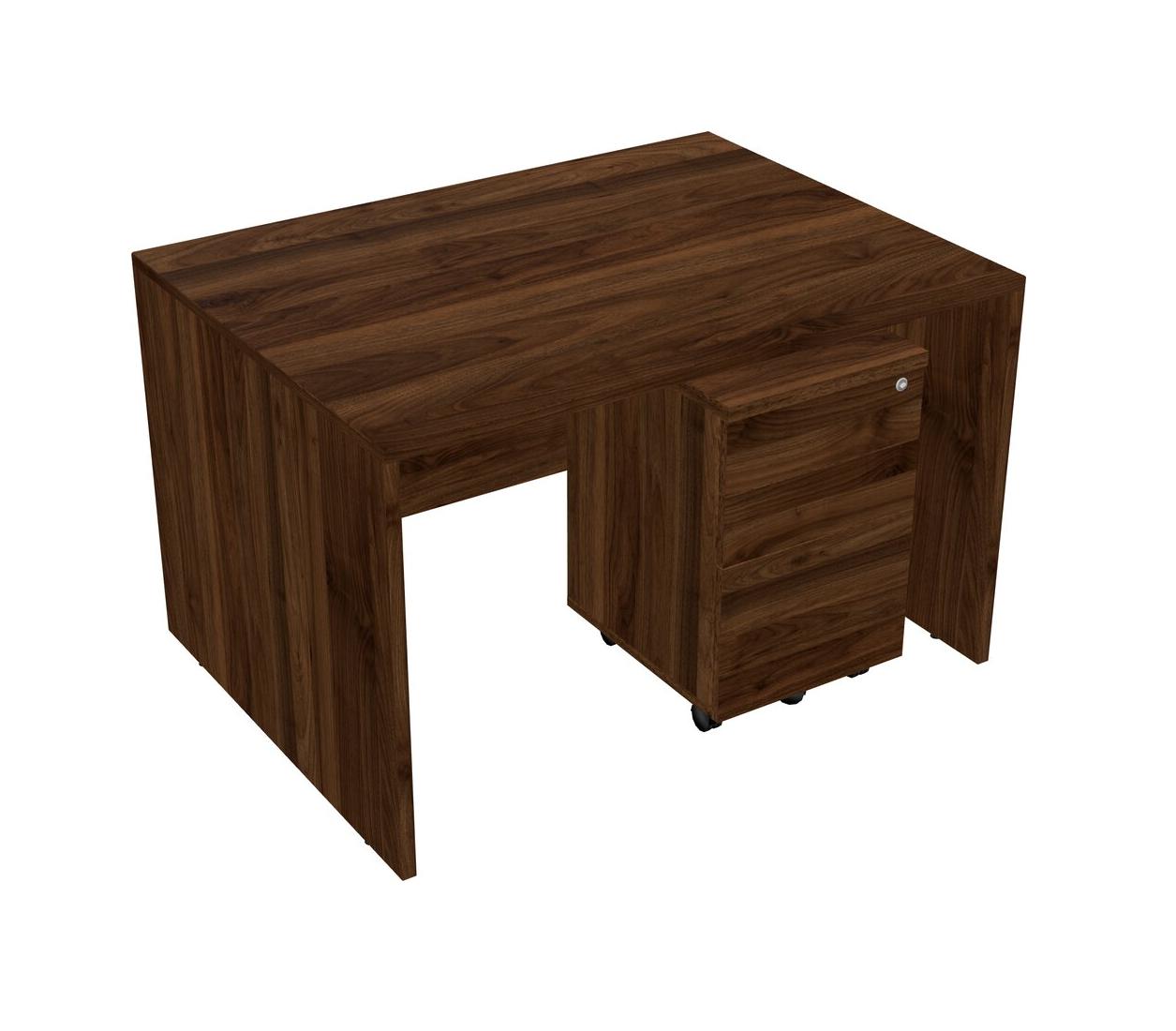 Bureau Rectangulaire En Noyer Columbia Avec Tiroirs Mobiles En Bois