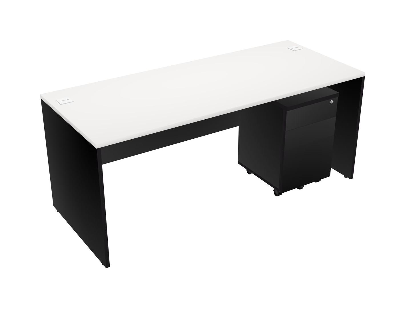 Bureau Rectangulaire Blanc Avec Tiroirs Mobiles En Bois Noir