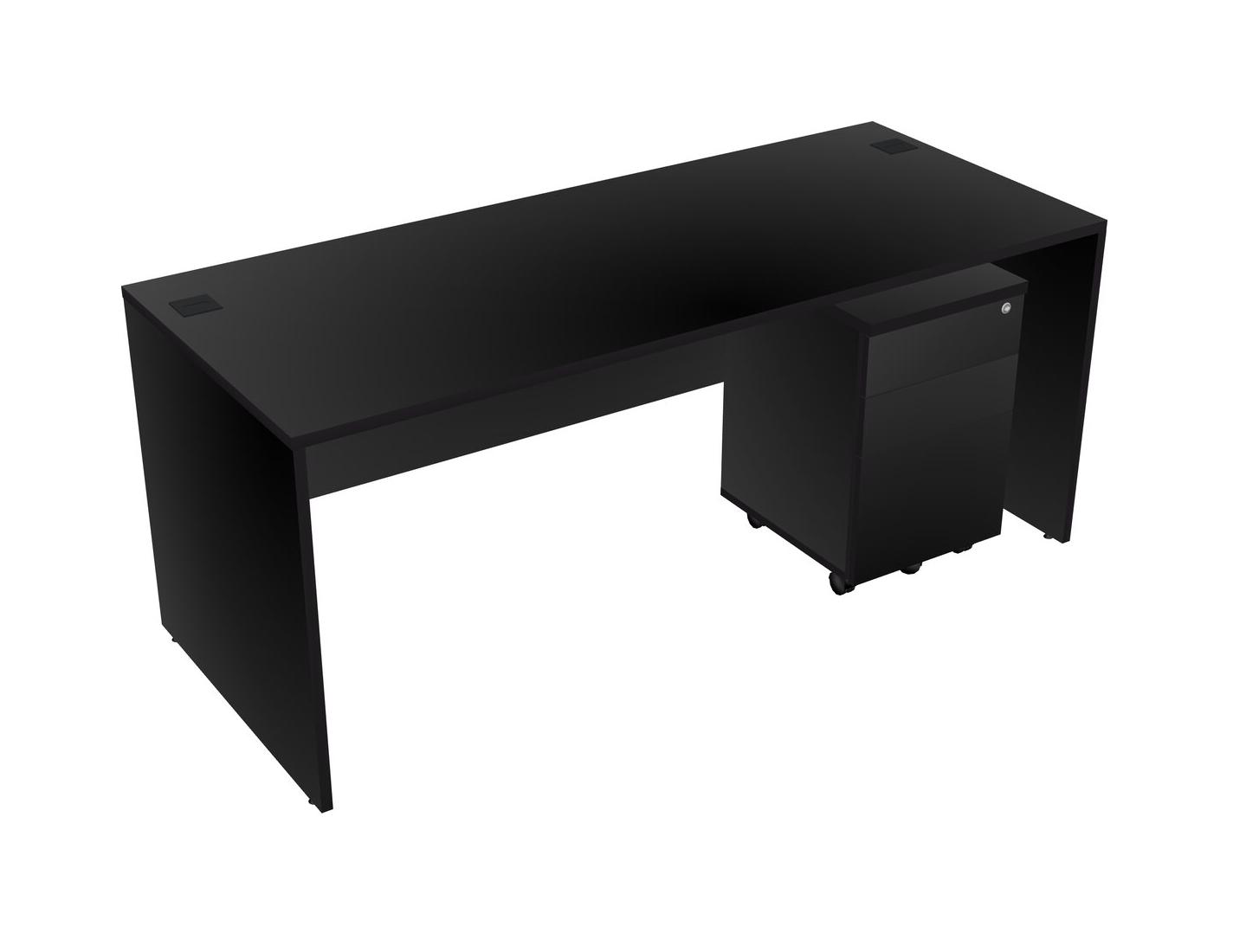 Bureau Rectangulaire Noir Avec Tiroirs Mobiles En Bois Noir