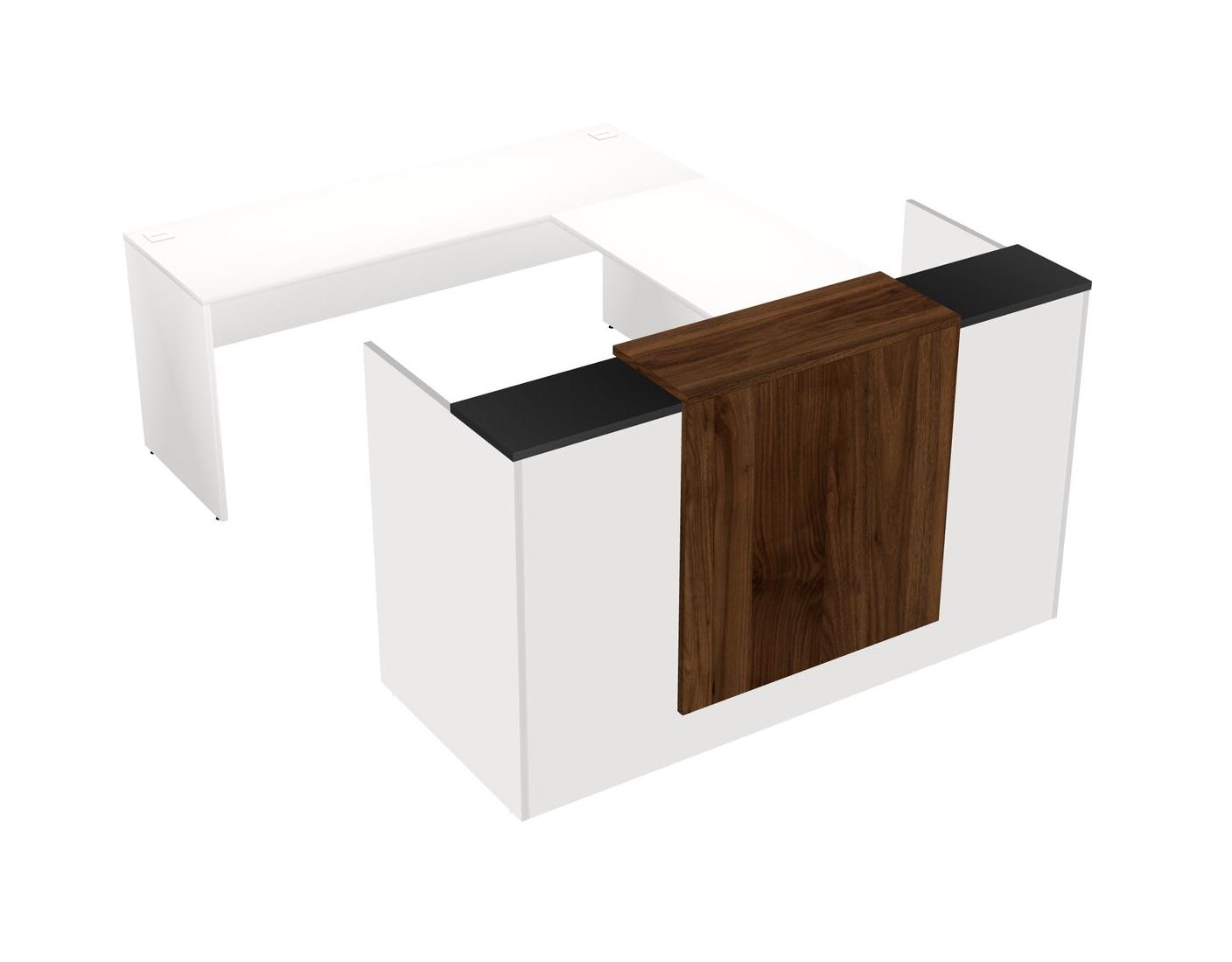 Comptoir D'accueil Modulaire Noir + Tiroirs Mobiles En Bois + Bureau Crédence + Comptoir Flottant
