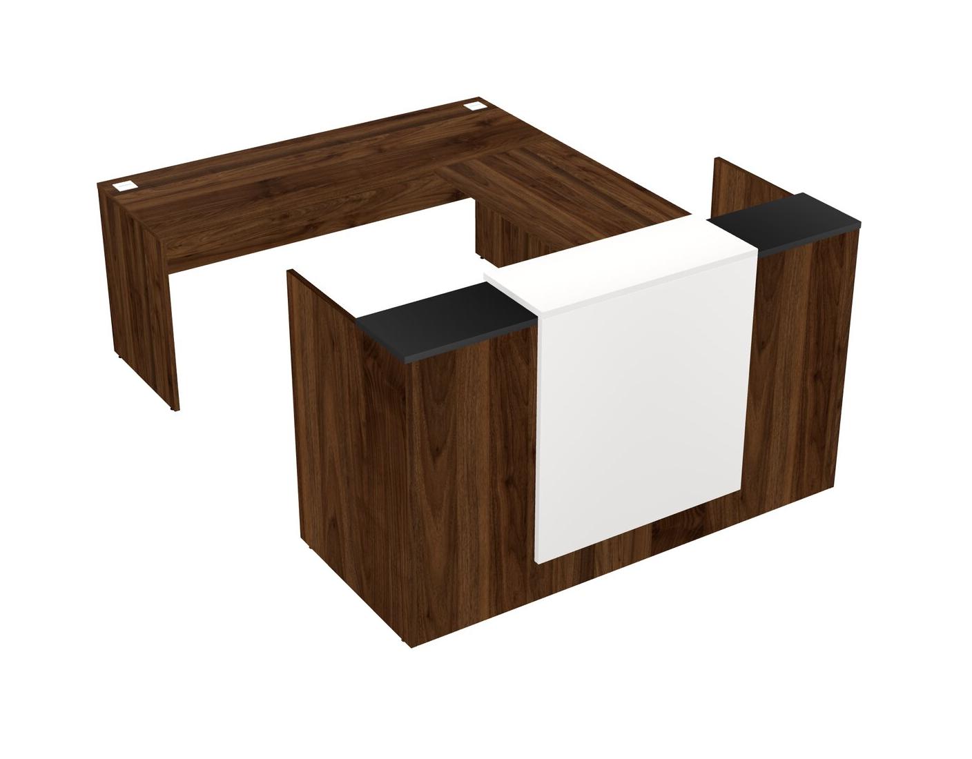 Comptoir D'accueil Modulaire Noir + Tiroirs Mobiles En Bois + Bureau Crédence + Comptoir Flottant