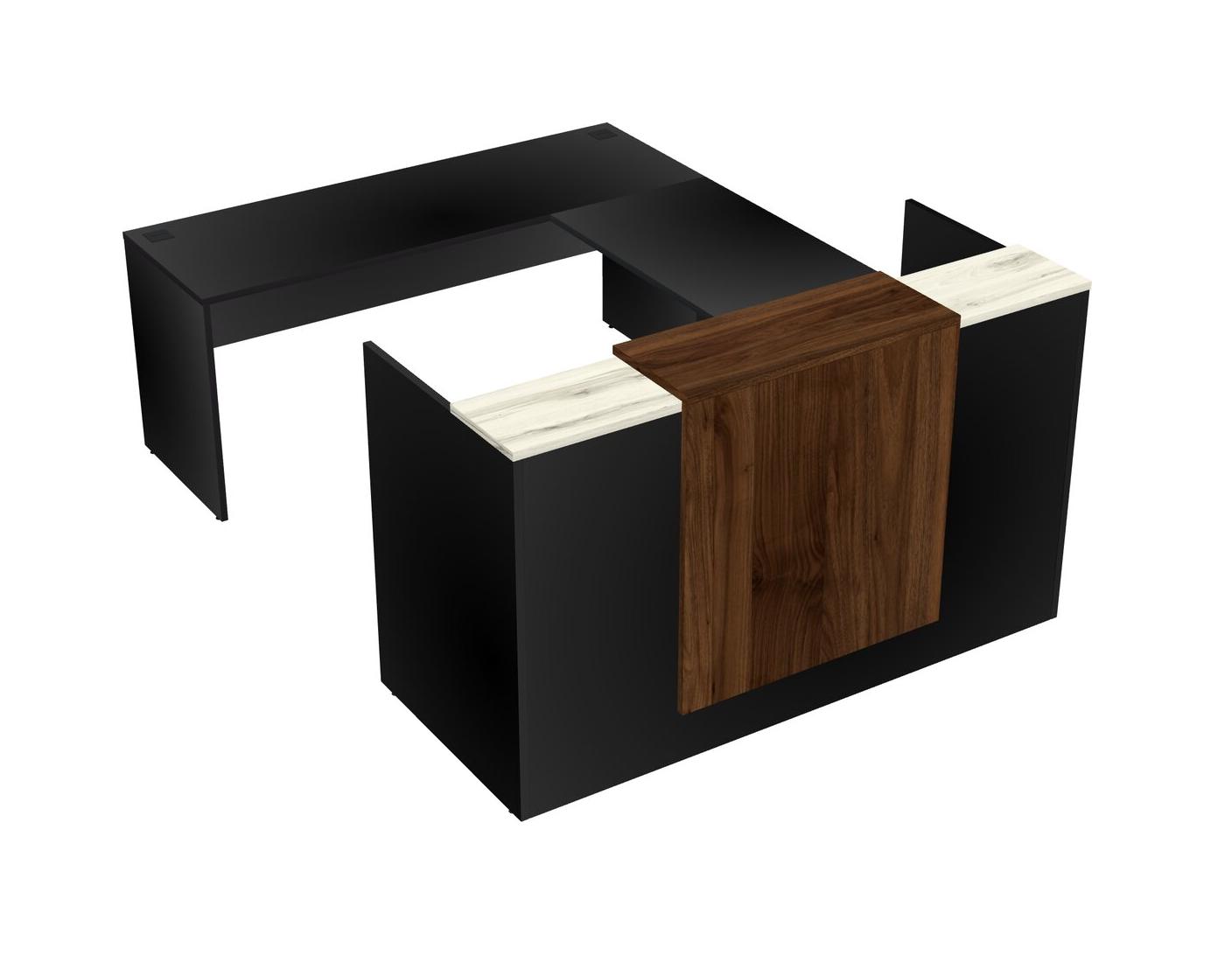 Comptoir D'accueil Modulaire Heinne Holz + Tiroirs Mobiles En Bois + Bureau Crédence + Comptoir Flottant