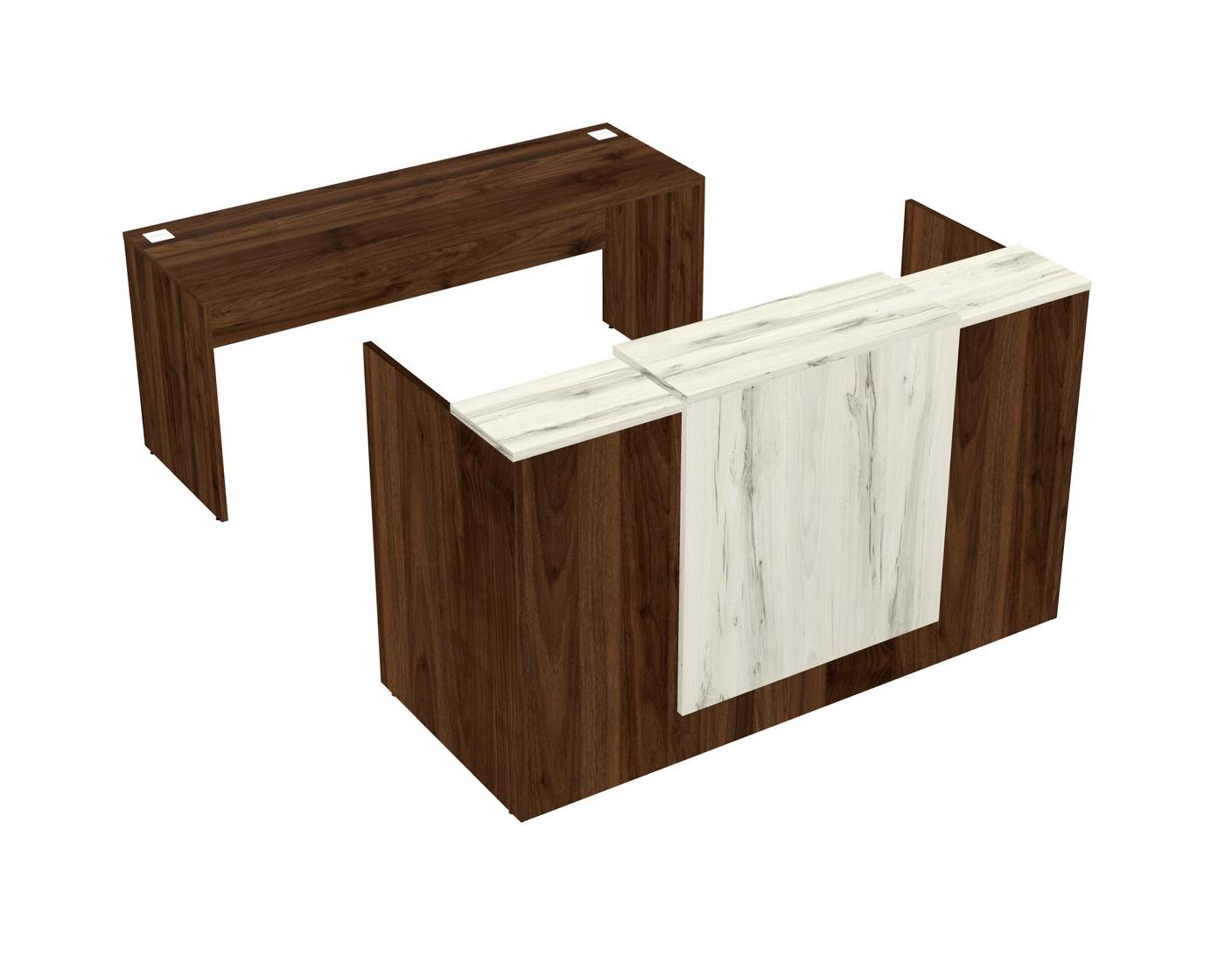Comptoir D'accueil Modulaire Heinne Holz + Tiroirs Mobiles En Bois + Bureau Crédence + Comptoir Flottant
