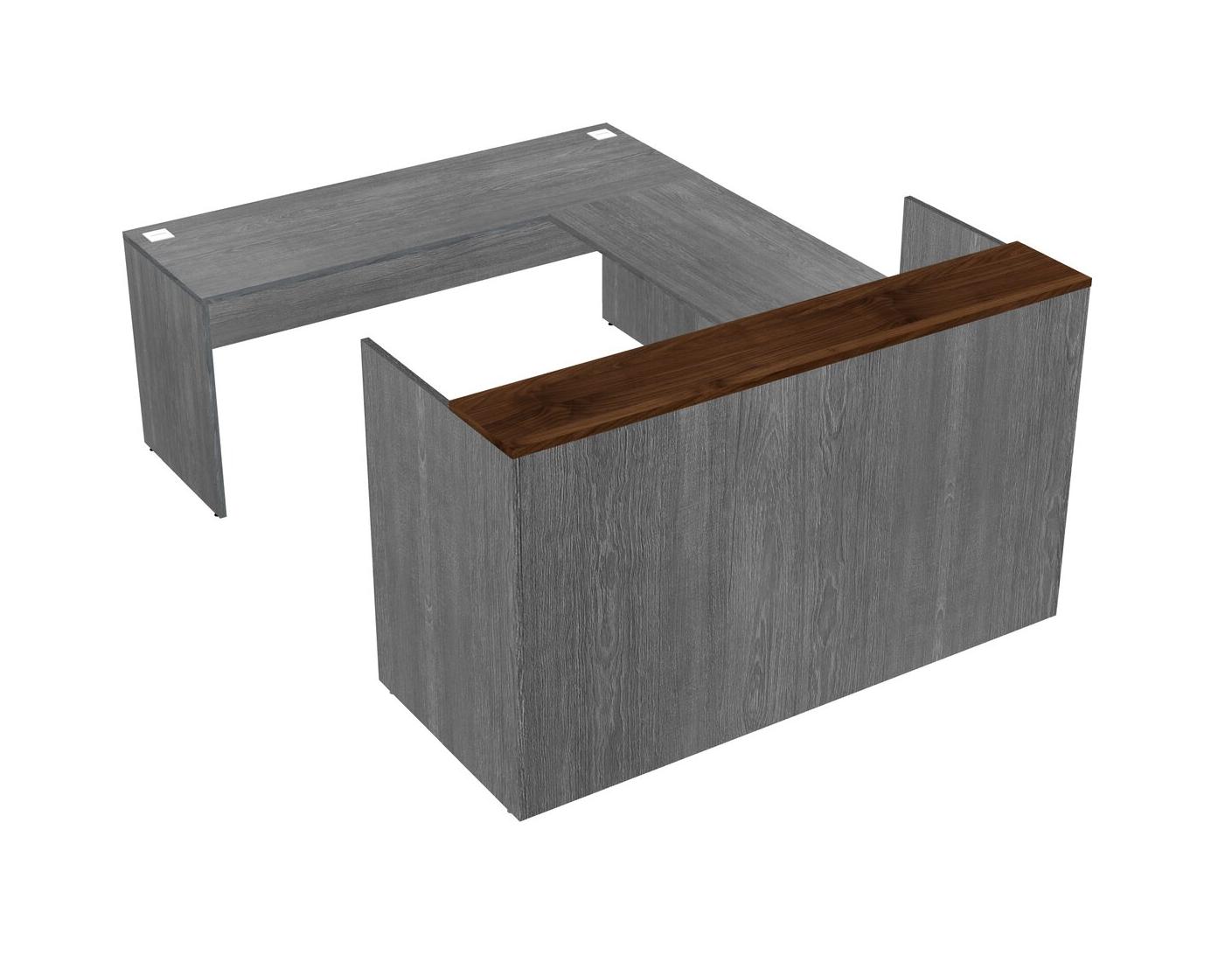 Comptoir D'accueil Modulaire En Noyer Columbia + Tiroirs Mobiles En Bois + Bureau Crédence