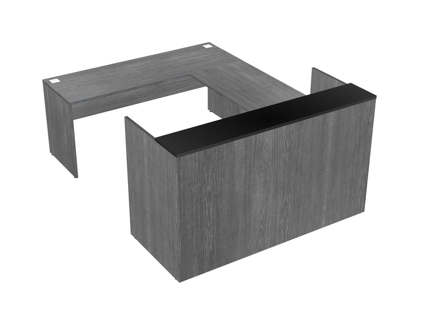 Comptoir D'accueil Modulaire Noir + Tiroirs Mobiles En Bois + Bureau Crédence