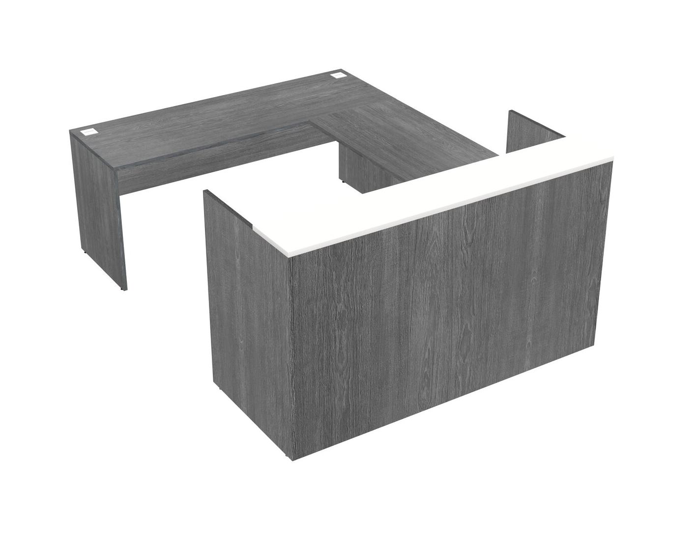 Comptoir D'accueil Modulable Blanc + Tiroirs Mobiles En Bois + Bureau Crédence