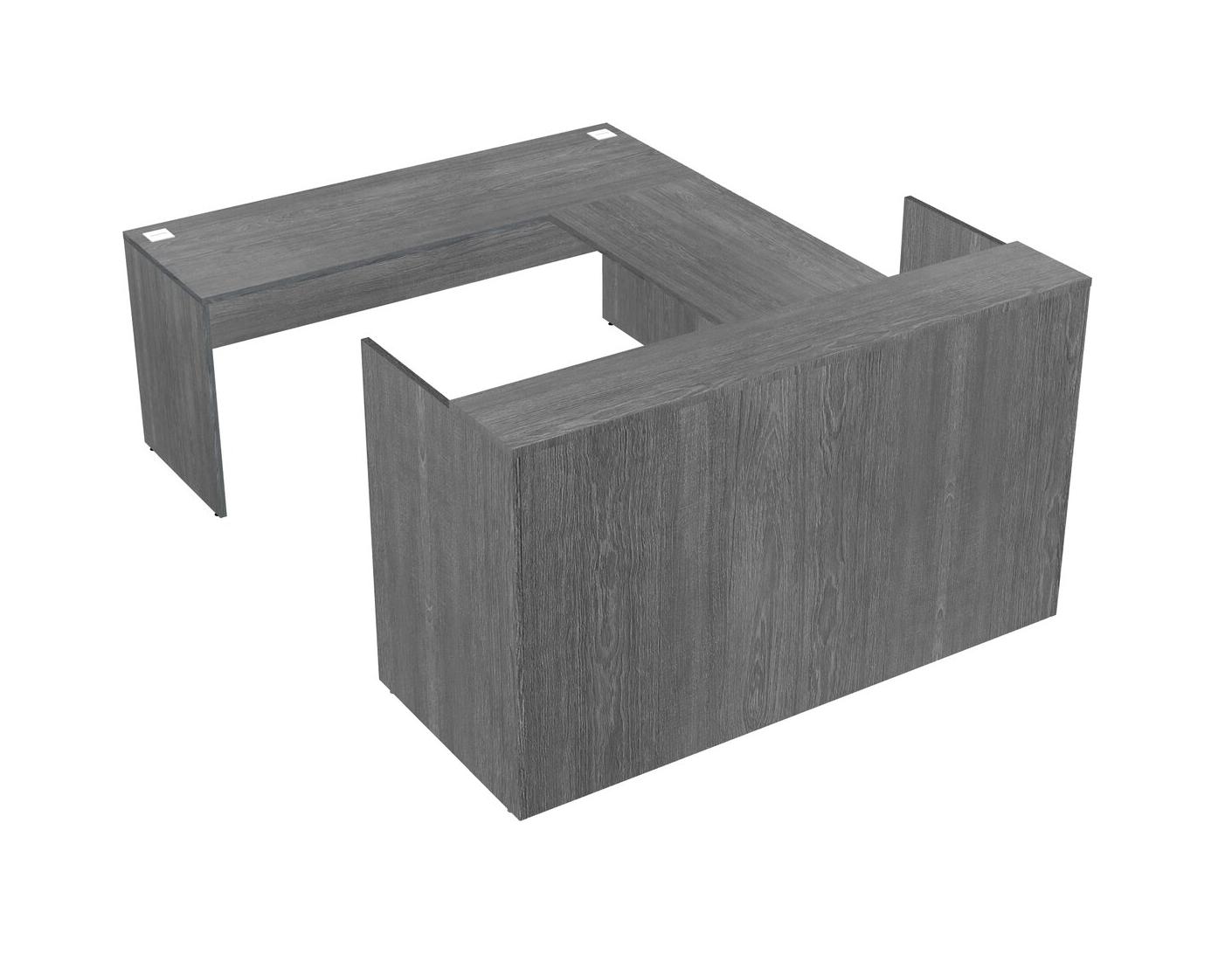 Comptoir D'accueil Modulaire Gris + Tiroirs Mobiles En Bois + Bureau Crédence