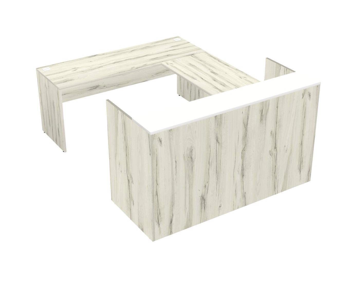 Comptoir D'accueil Modulable Blanc + Tiroirs Mobiles En Bois + Bureau Crédence